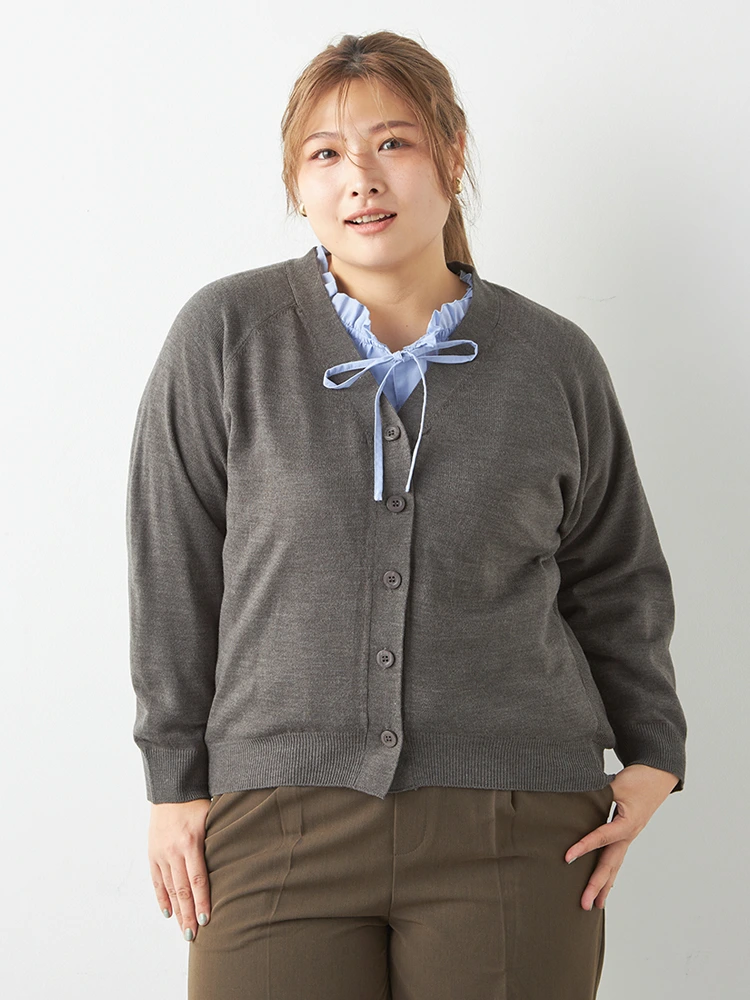 【EL.FO(エルフォ)】クルーネックニットカーディガン大きいサイズレディース