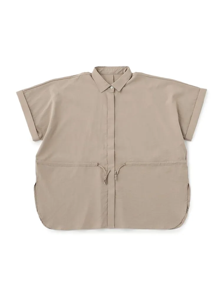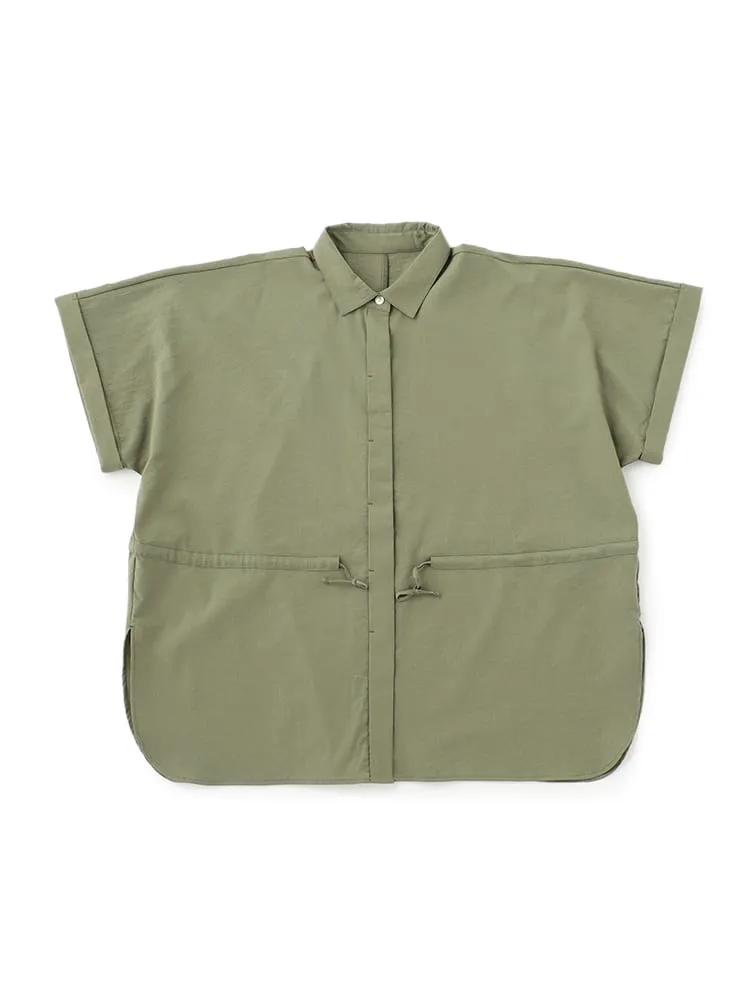 【NoJean(ノージーン)】綿麻裾シャーリングプルオーバーシャツ