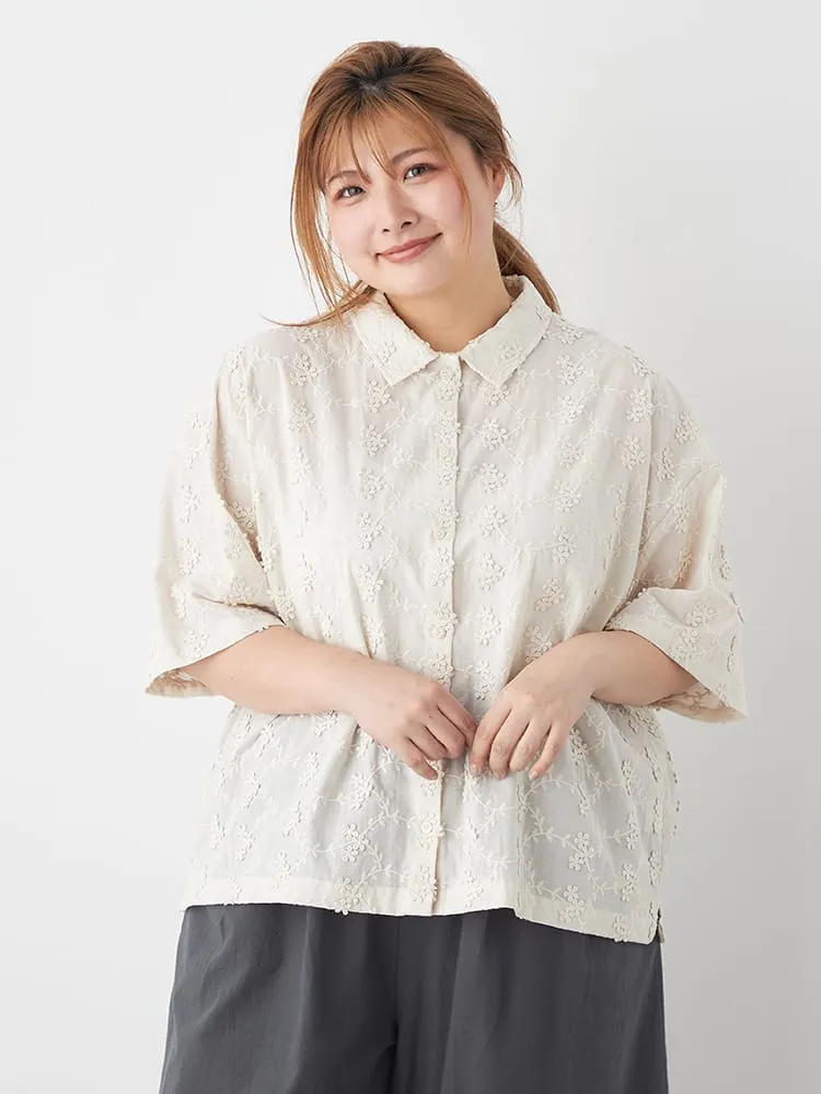【NoJean(ノージーン)】フラワー刺繍ハーフスリーブシャツ