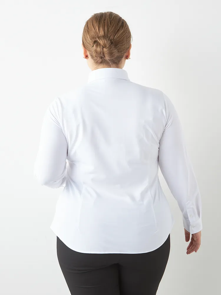 【完全ノーアイロン】レディース長袖アイシャツブラウス白無地レギュラー大きいサイズレディース
