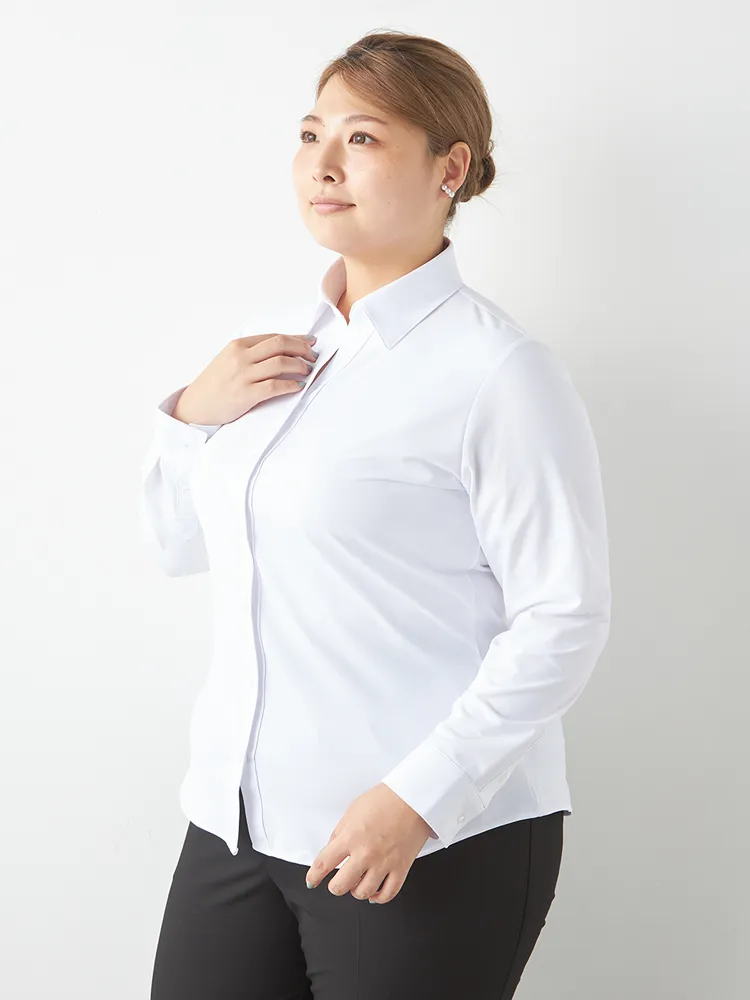 【完全ノーアイロン】レディース長袖アイシャツブラウス白無地スキッパー大きいサイズレディース