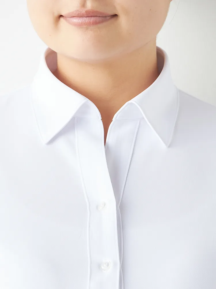 【完全ノーアイロン】レディース半袖アイシャツブラウス無地レギュラーホワイト大きいサイズレディース