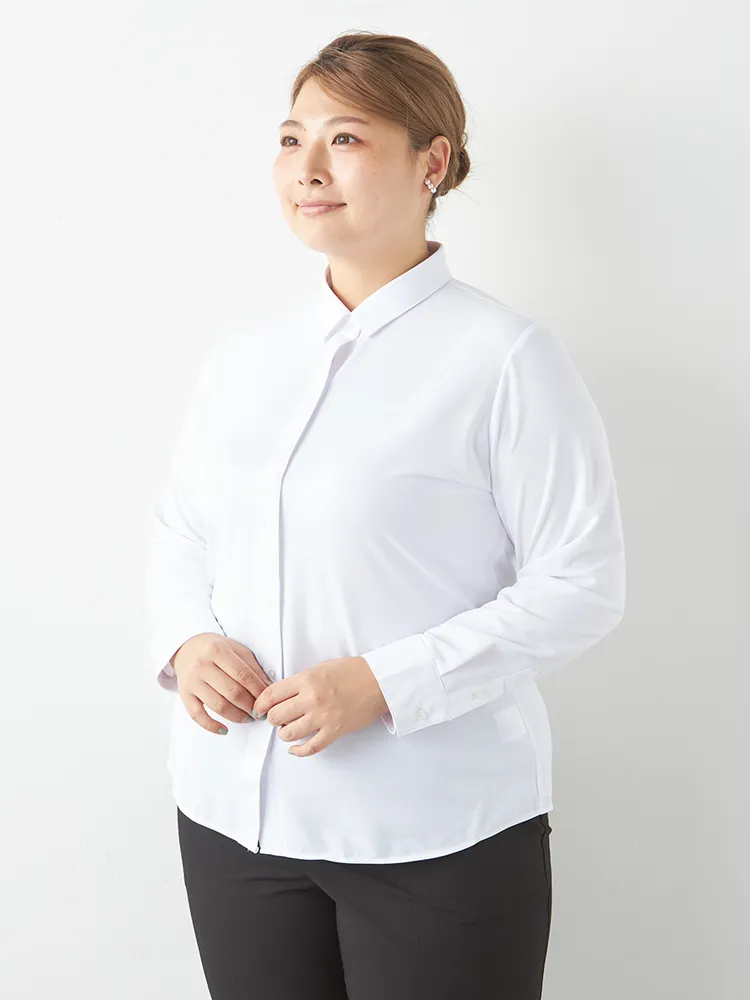 【完全ノーアイロン】レディース長袖アイシャツブラウス白無地スキッパー大きいサイズレディース