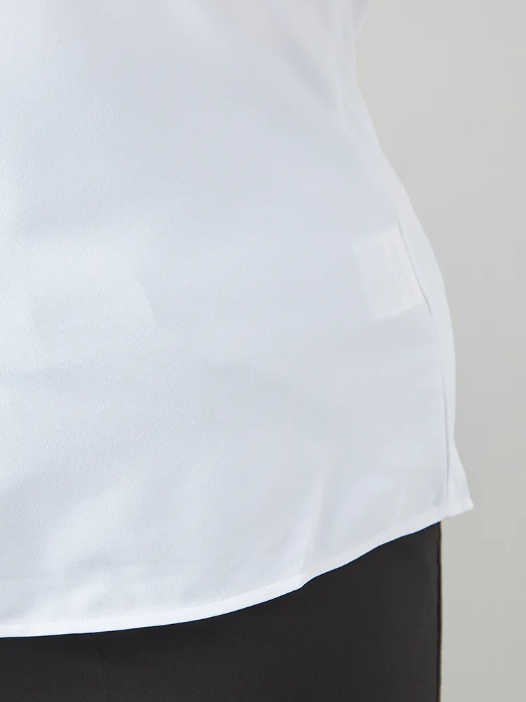 【完全ノーアイロン】レディース半袖アイシャツブラウス無地レギュラーホワイト大きいサイズレディース