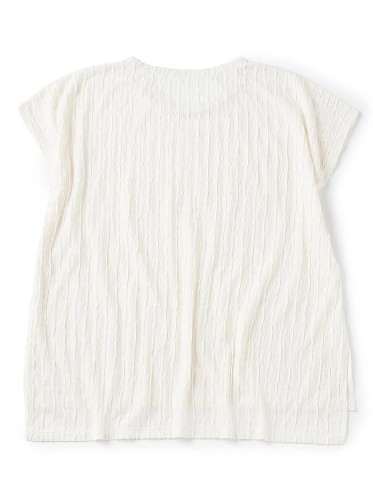 表面変化のあるポコポコしたジャガード素材のシンプルなアンサンブルです。