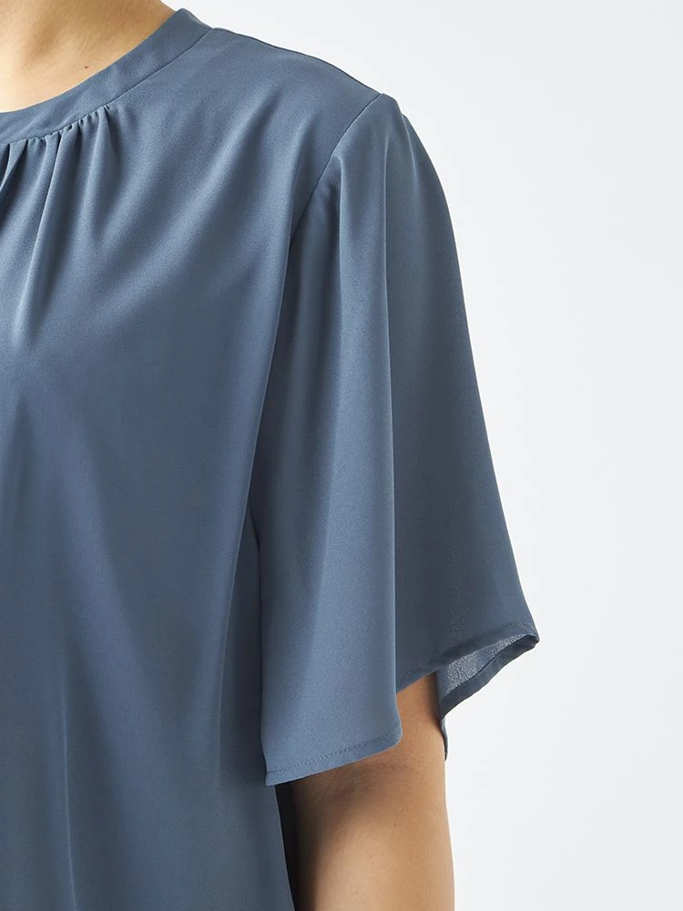 フロント部分にパール調釦を使用した通勤に最適なブラウスです。