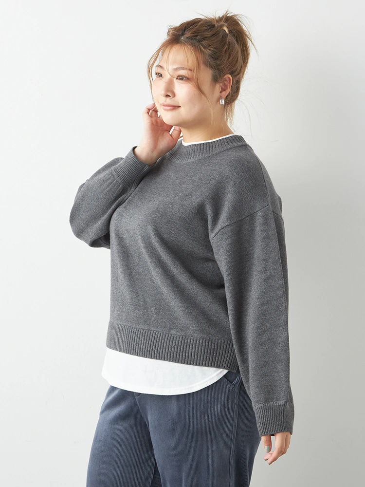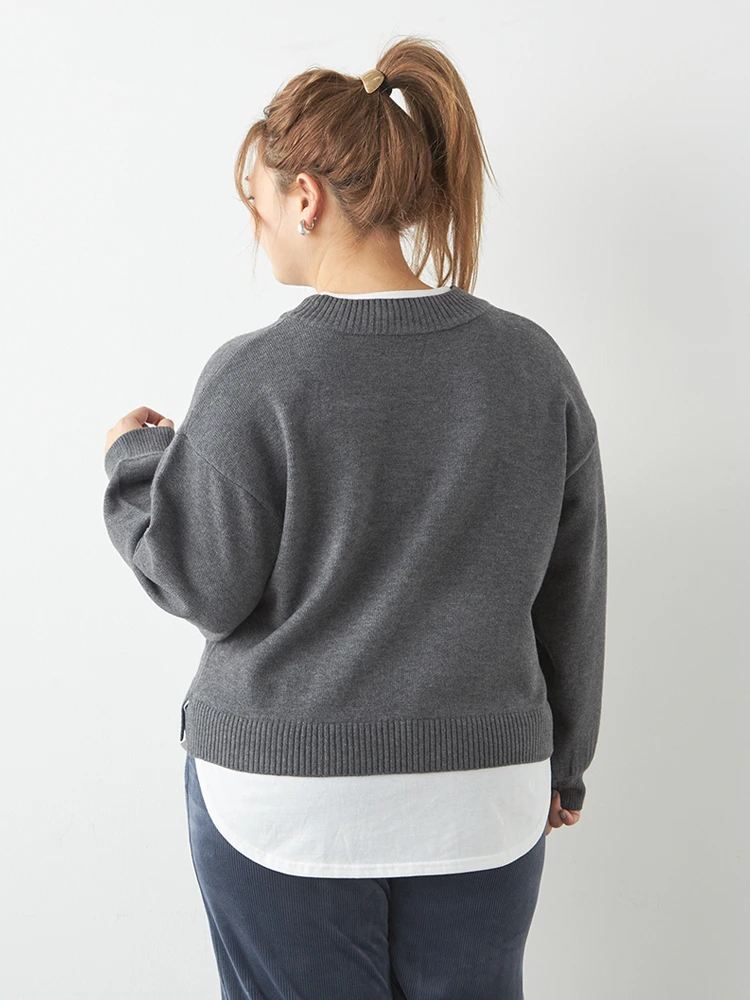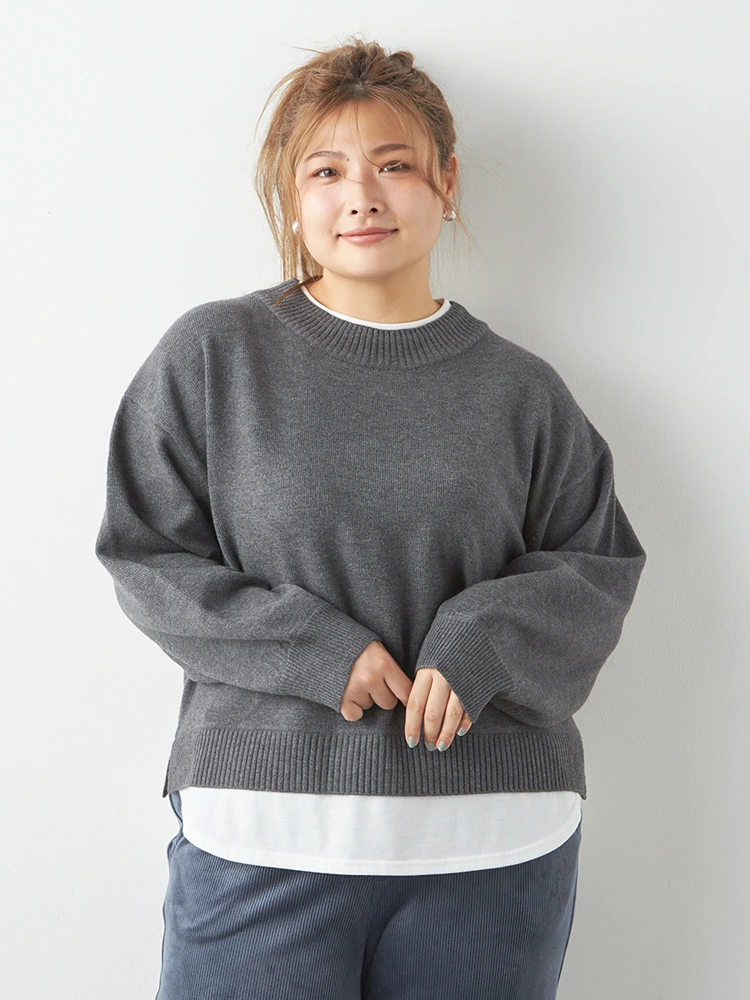 【No Jean(ノージーン)】フェイクレイヤードニット 大きいサイズ レディース