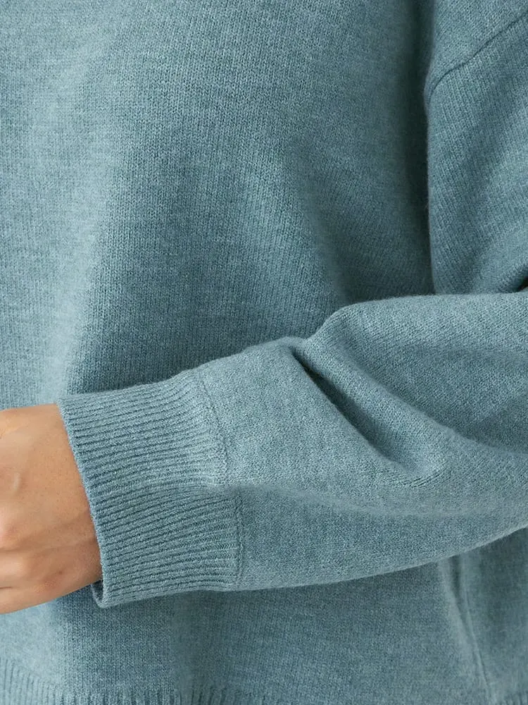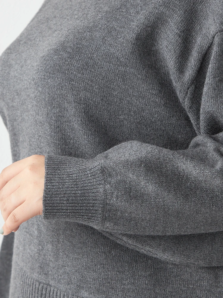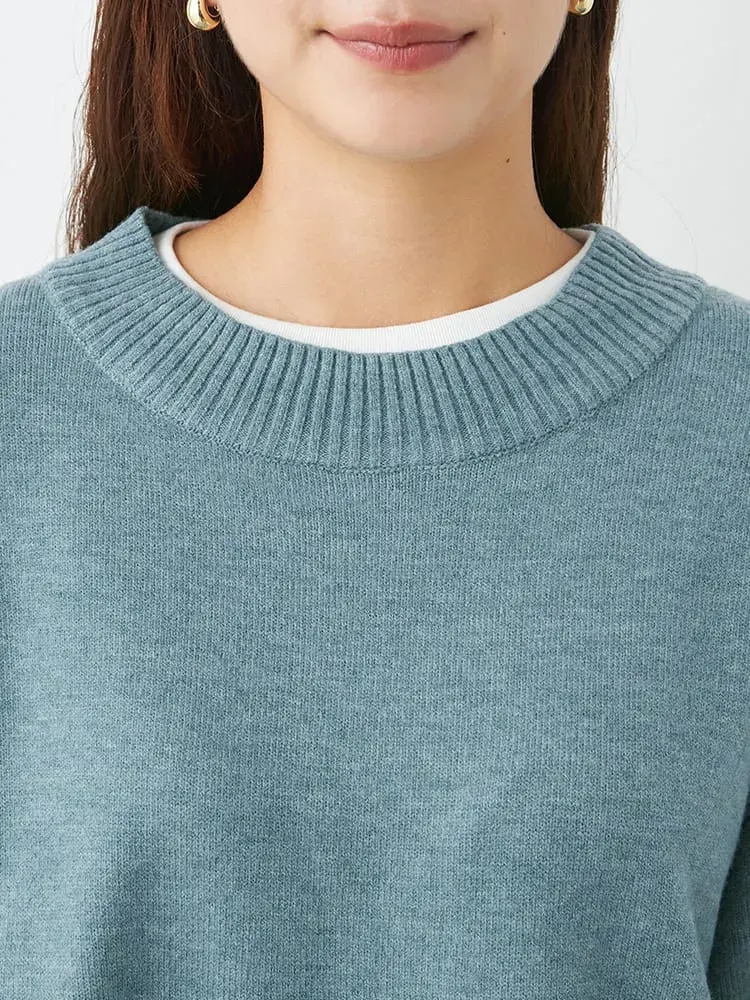 【NoJean(ノージーン)】ふわもち天竺編みモックネックポイント配色ニット大きいサイズレディース