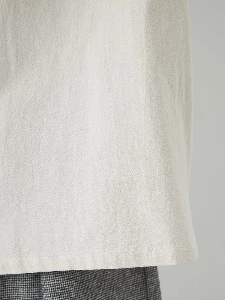裾の両サイドにはスリット入りで、シャツをボトムからタックアウトしても様になります。