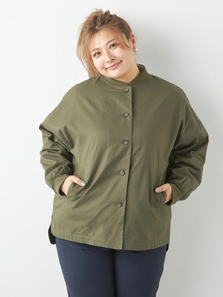 【No Jean(ノージーン)】裏フリースノーカラージャケット 大きいサイズ レディース