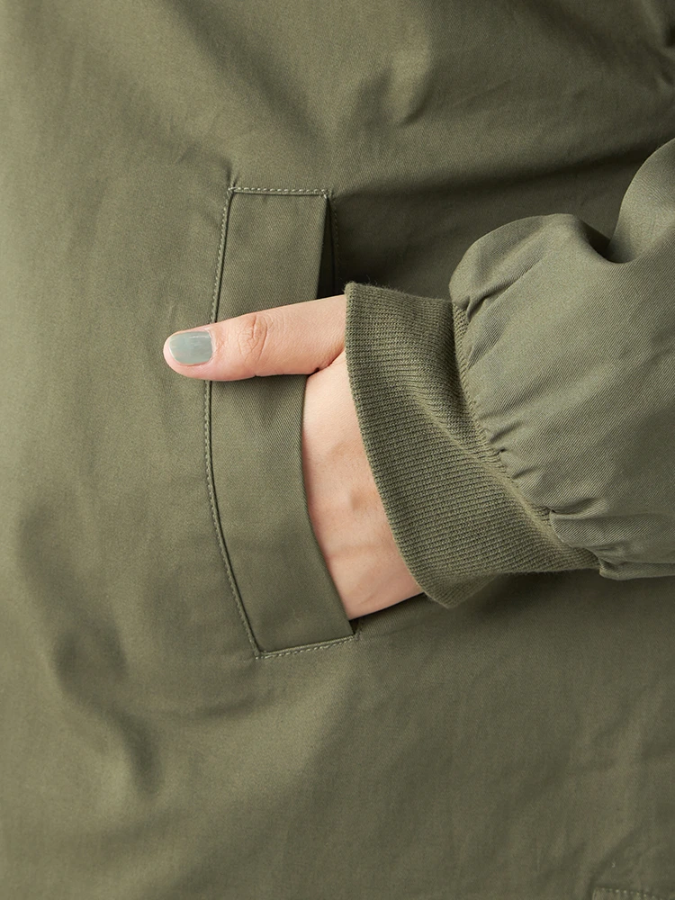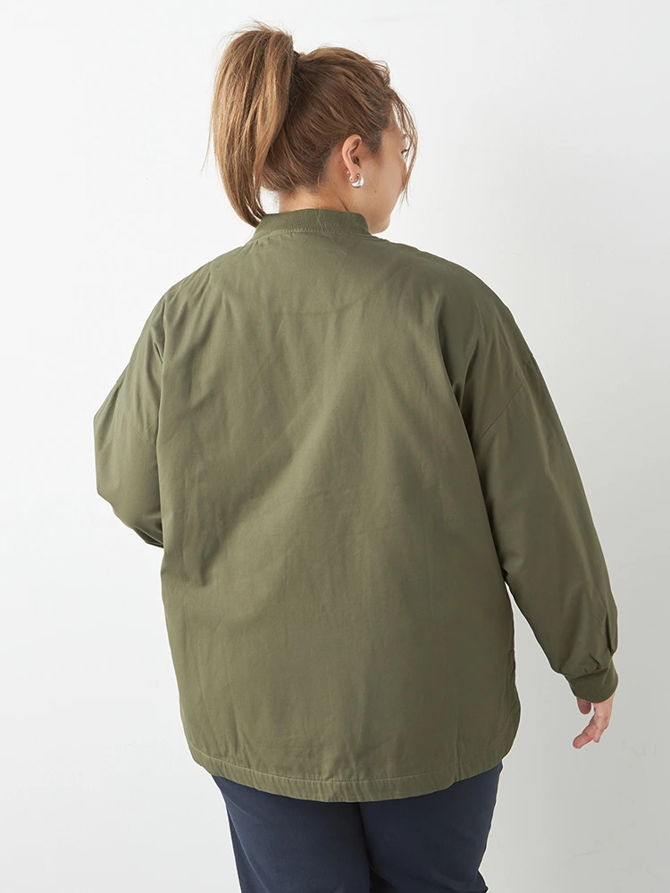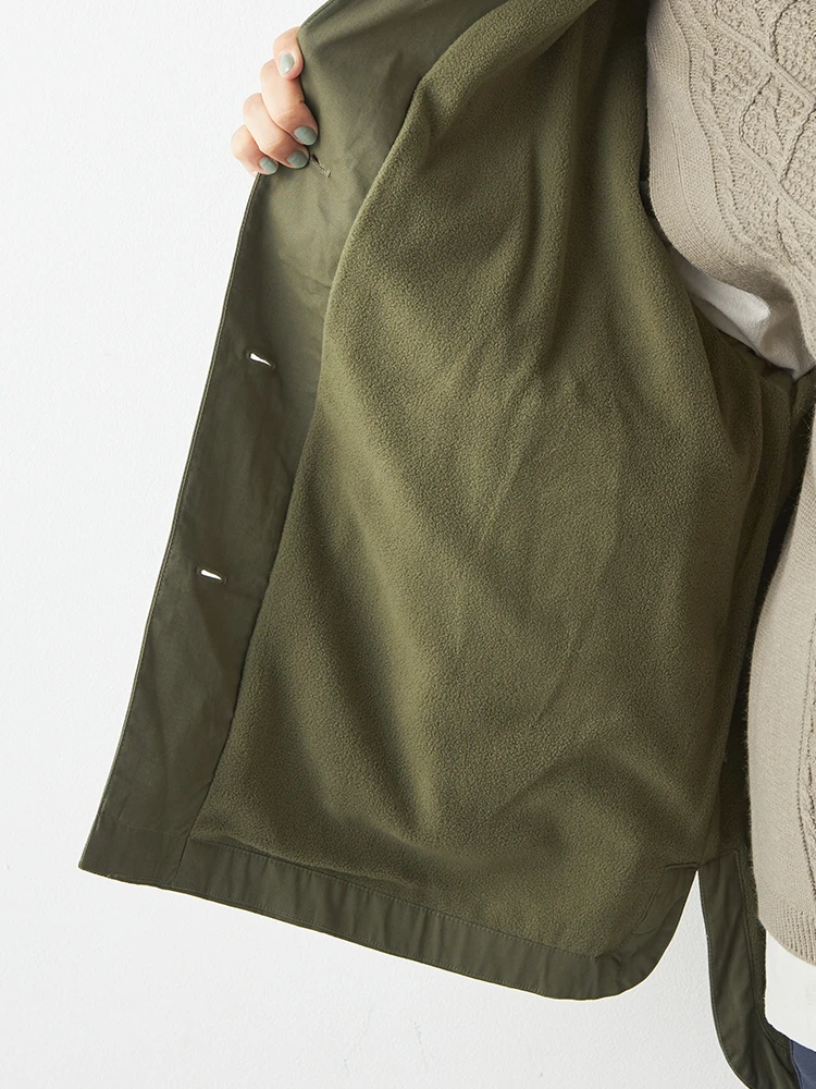 裏地にフリース生地を配したコットン素材のジャケットです。