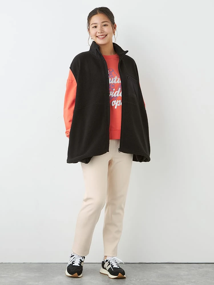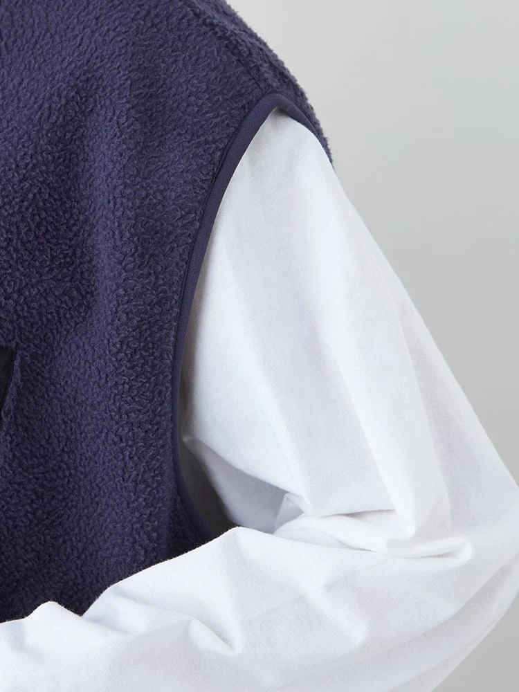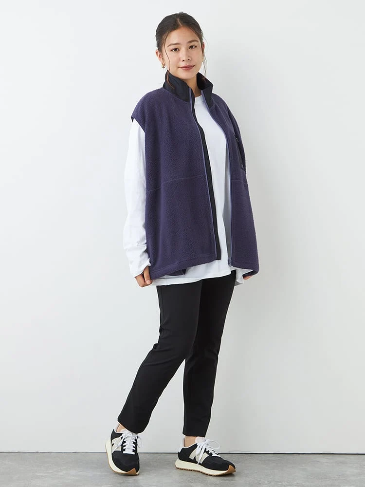 メンズライクな、たっぷりとしたシルエットがポイントのボアフリースベスト。