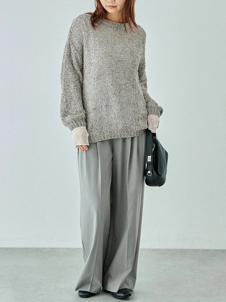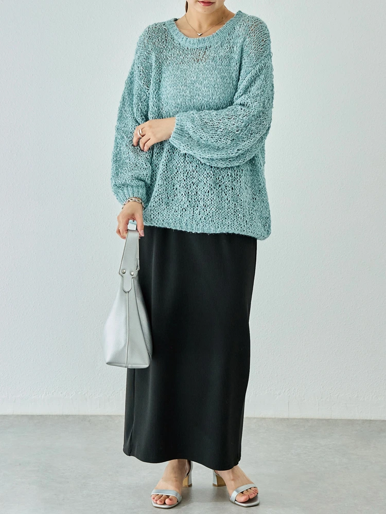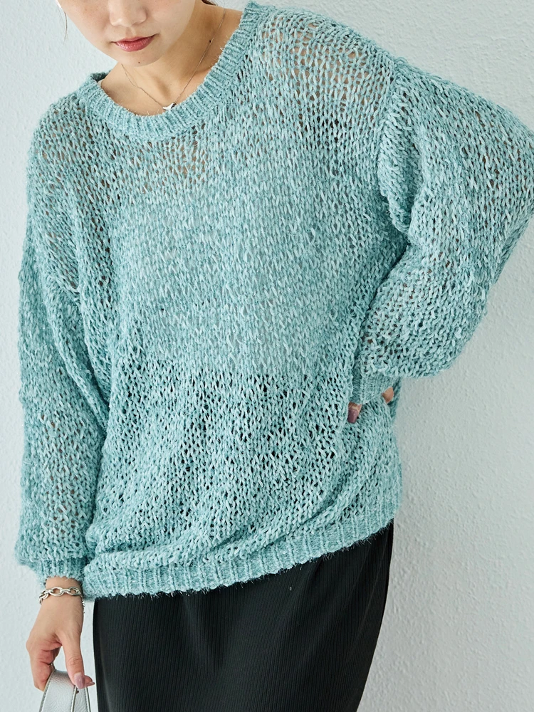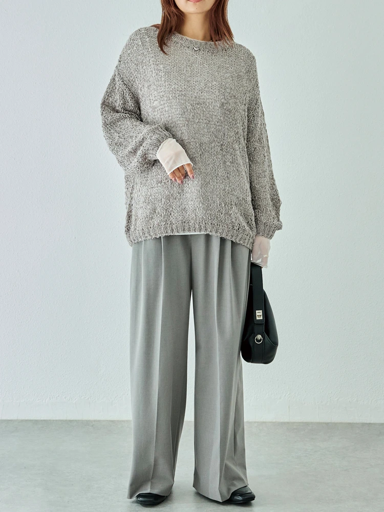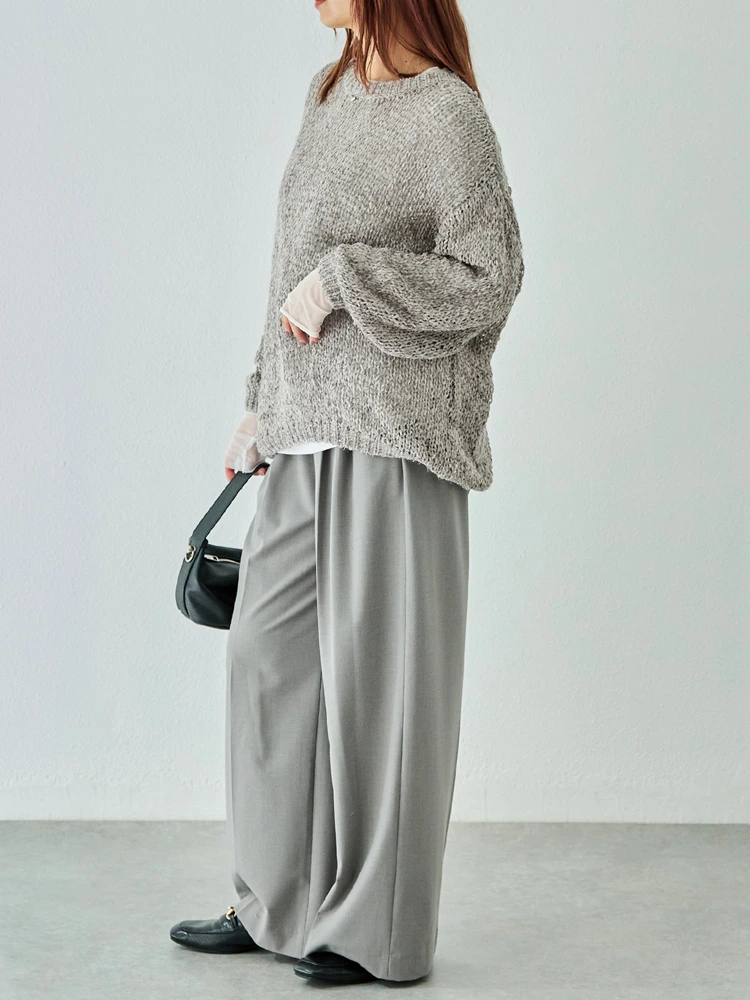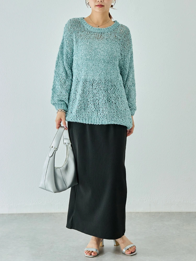 ざっくりと編まれた素材は程よい透け感があり、レイヤードスタイルを楽しめるのもポイント。