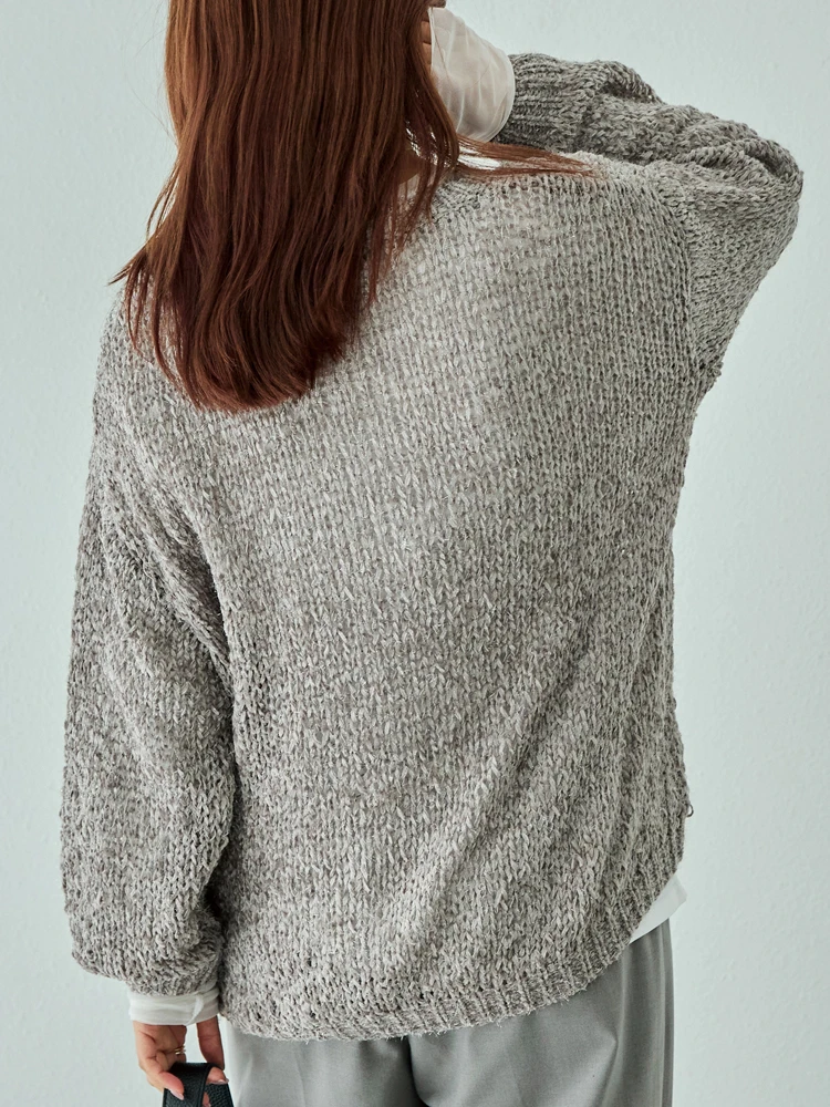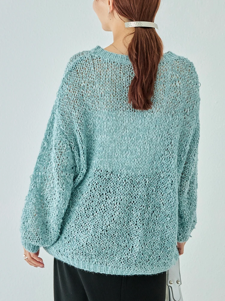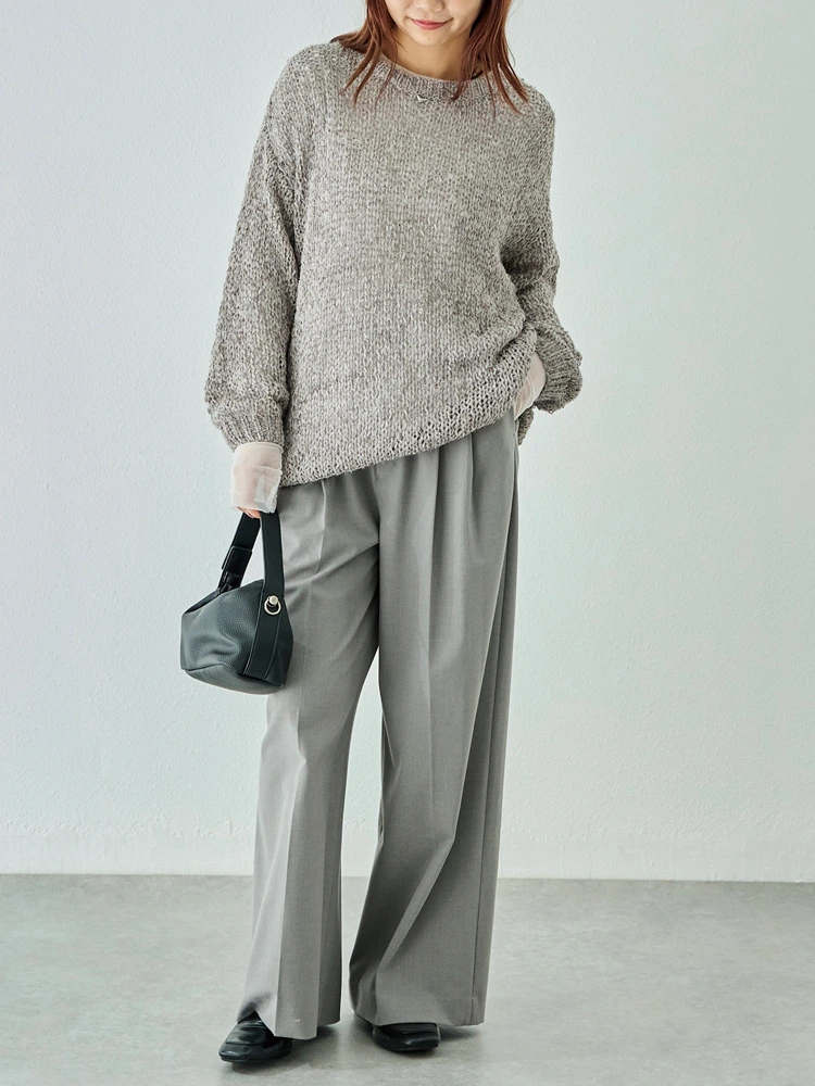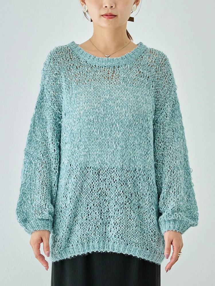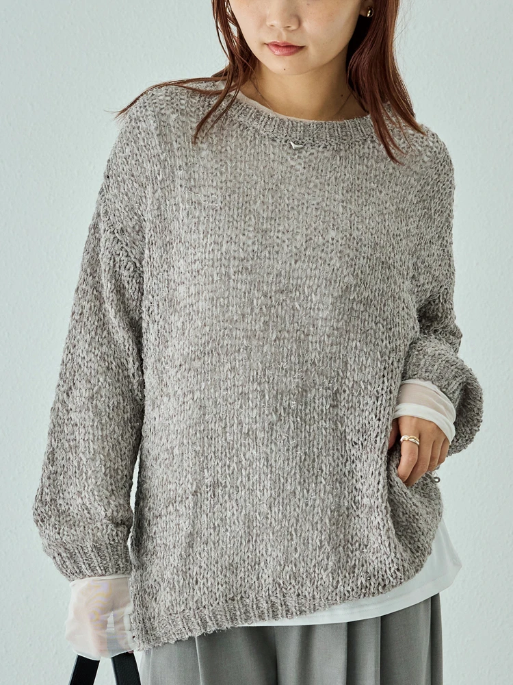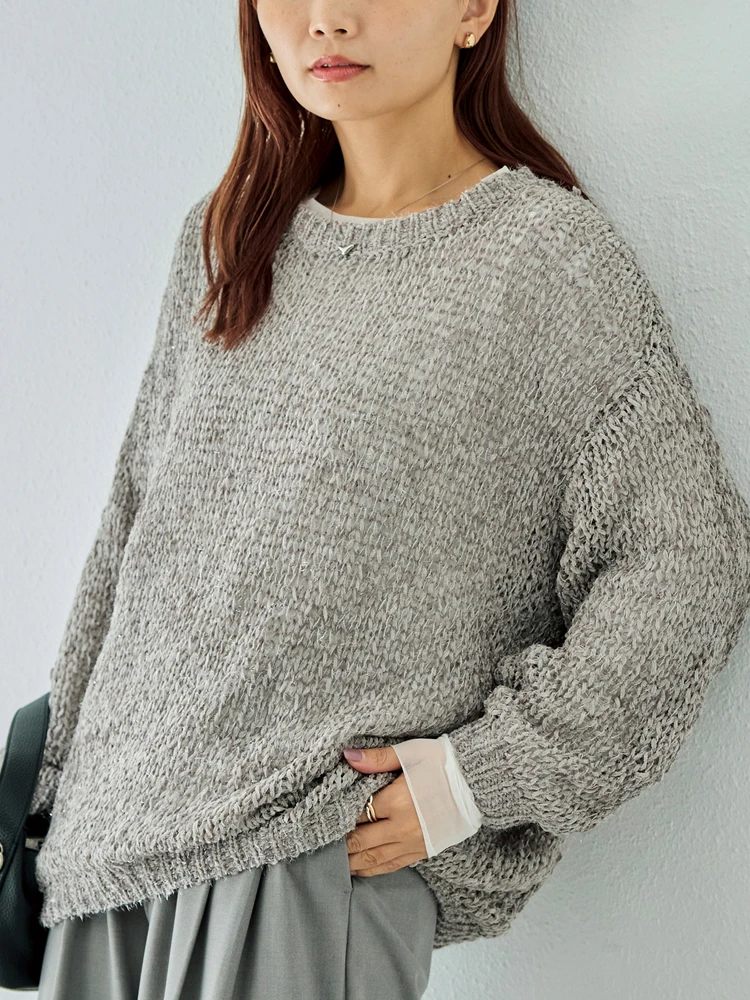 ざっくりと編まれた素材は程よい透け感があり、レイヤードスタイルを楽しめるのもポイント。