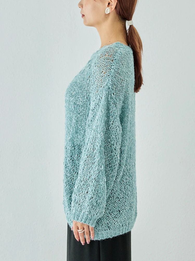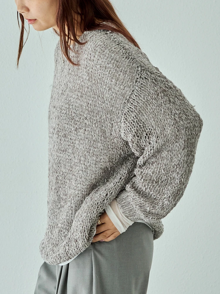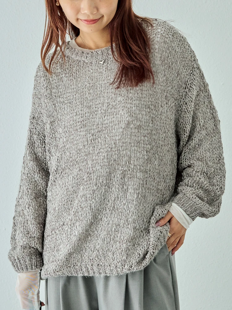 ふんわりとしたモールヤーンにラメ糸を織り交ぜた、軽やかで華やかな印象のプルオーバー。