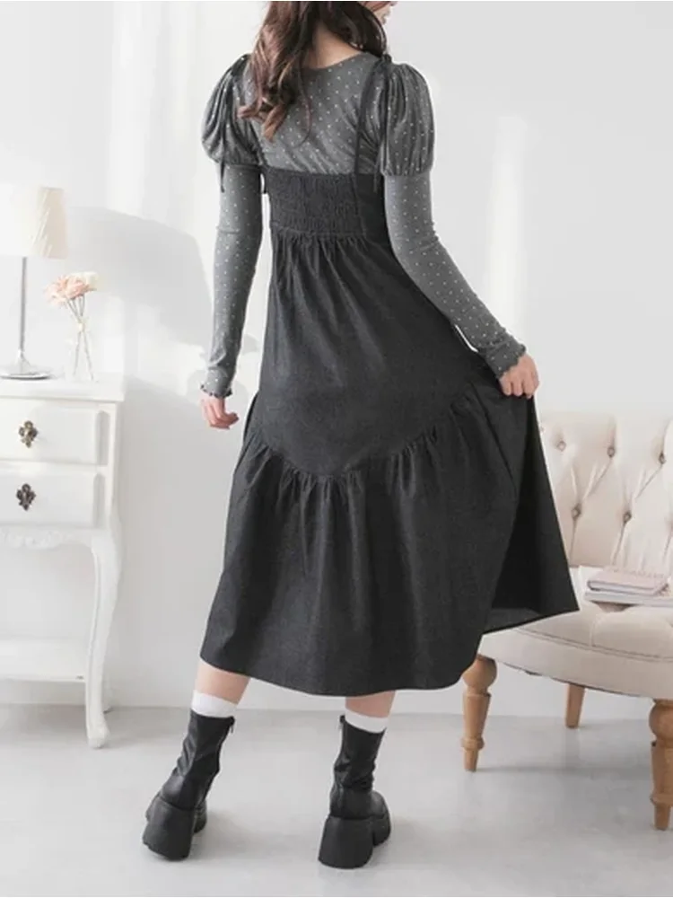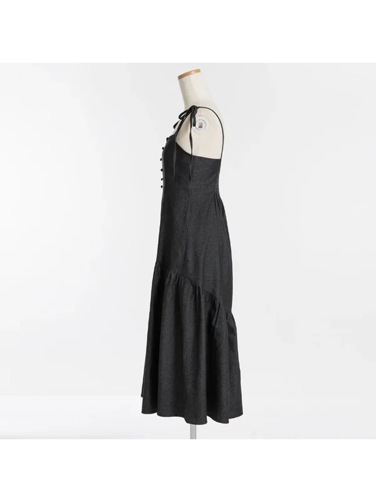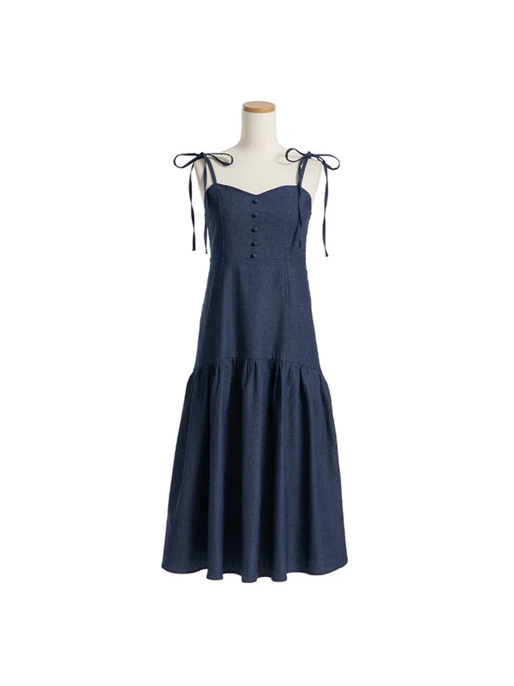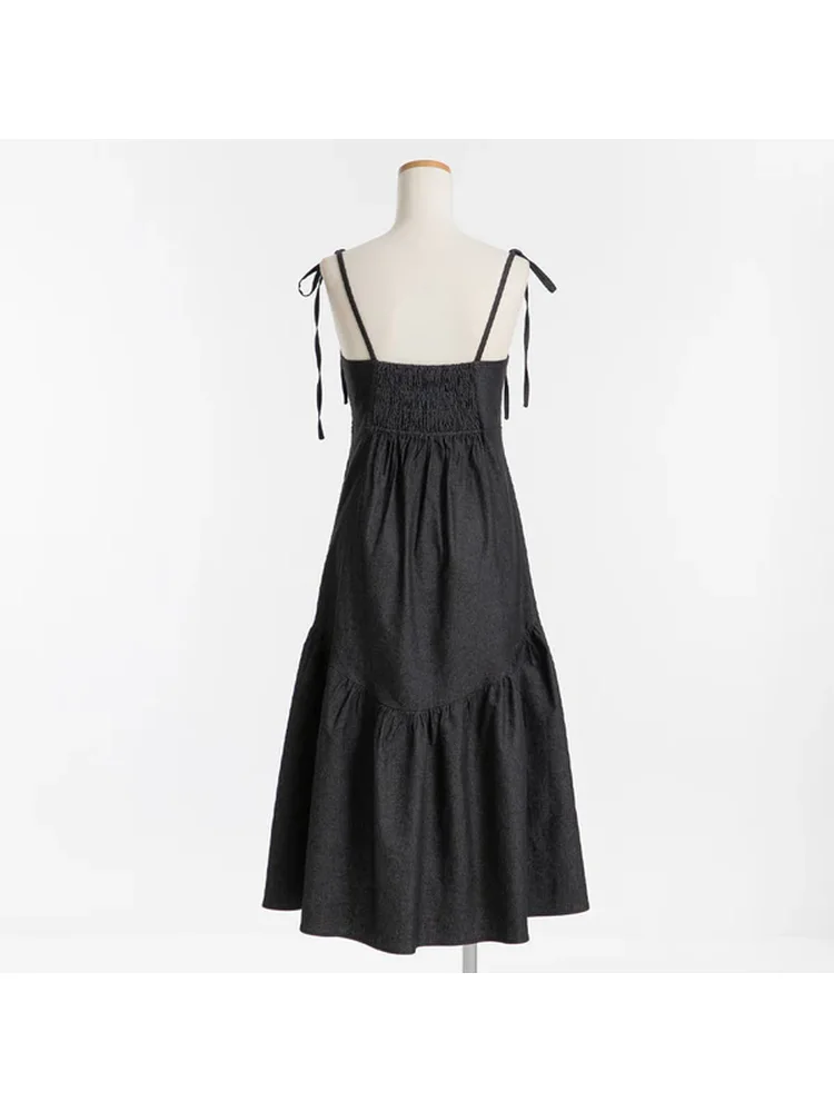 シンプルでありながらも洗練されたデザインが特徴のデニムキャミワンピース。