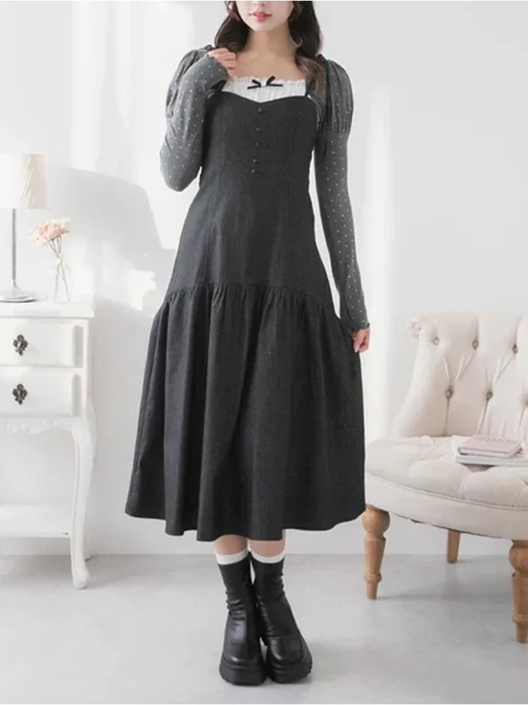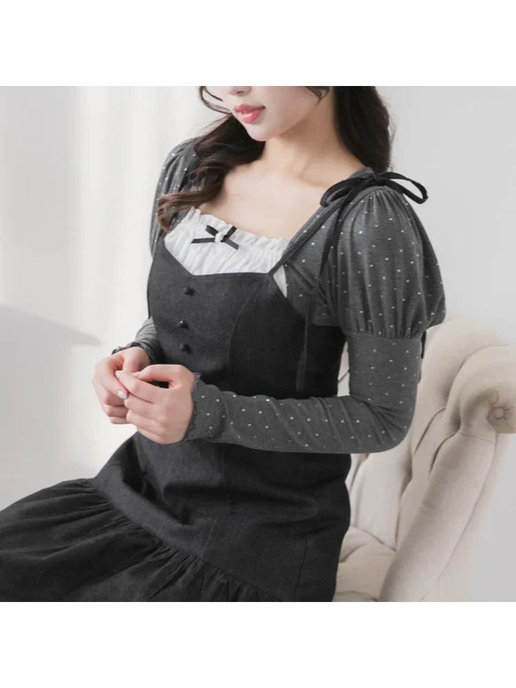 肩リボンはご自身で結ぶ仕様で、お好みで長さ調整可能です。