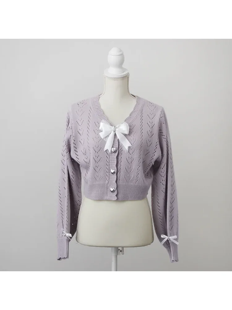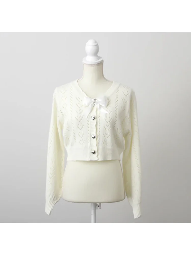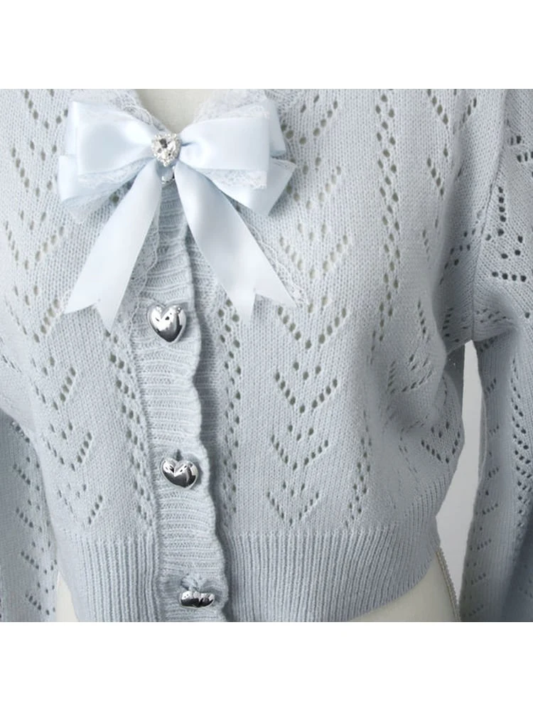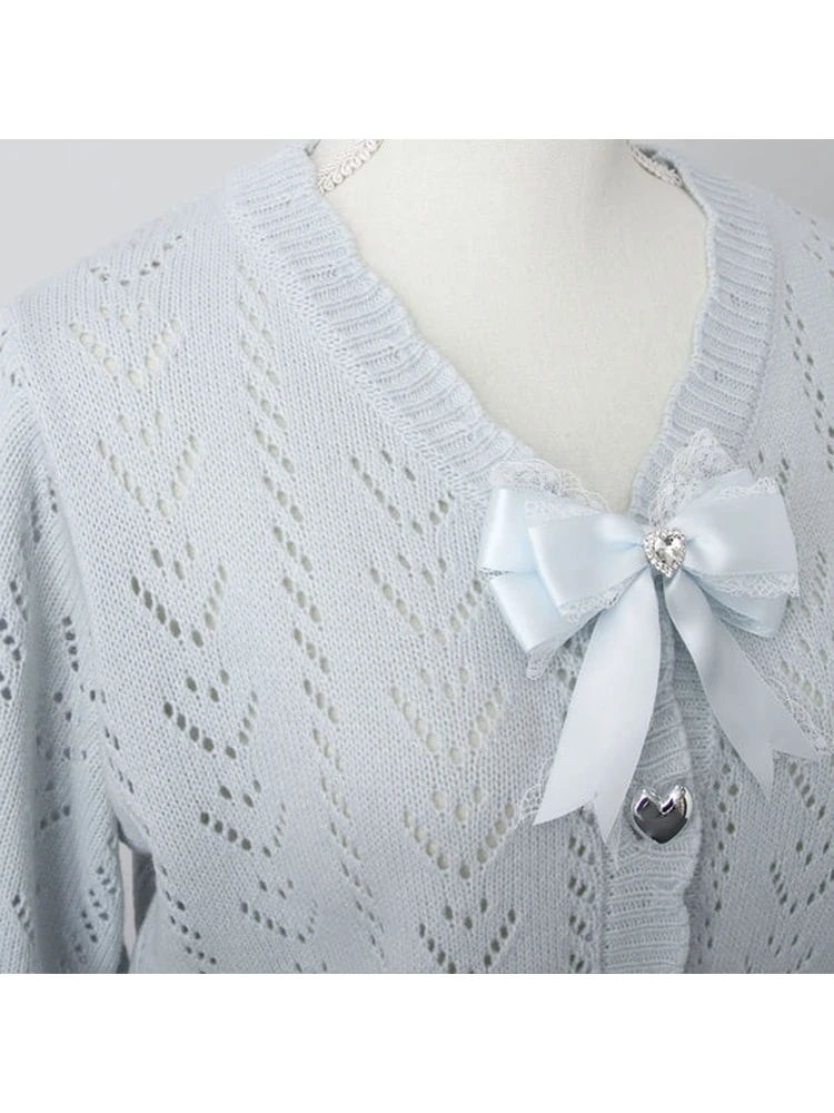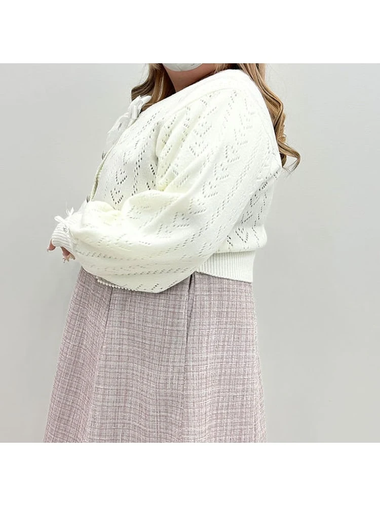 かわいいハートの編地の透かしカーディガンです♪