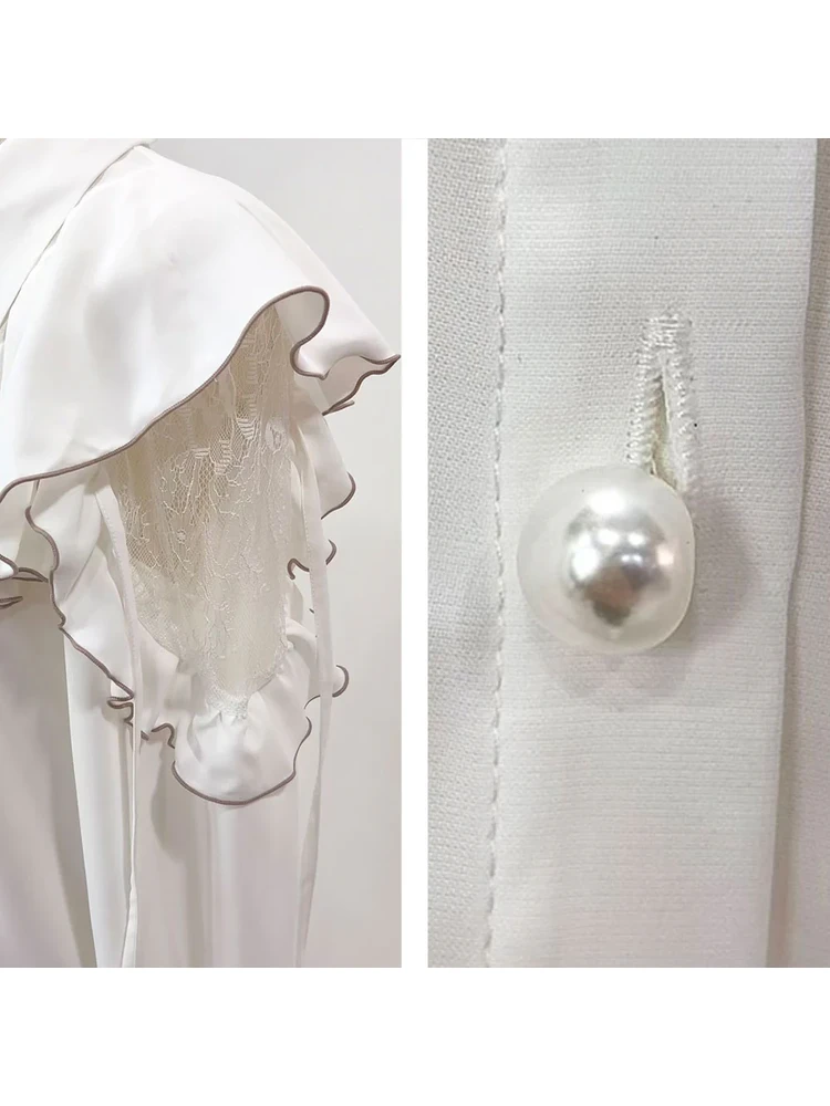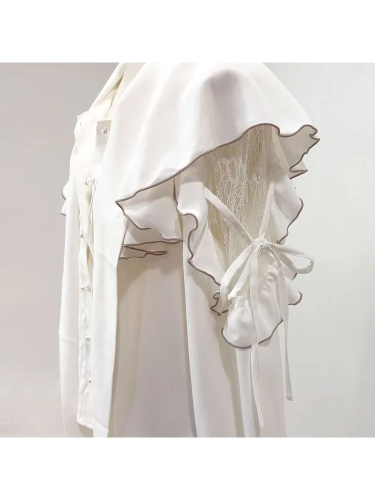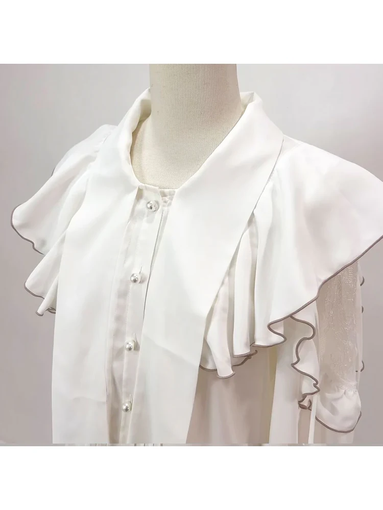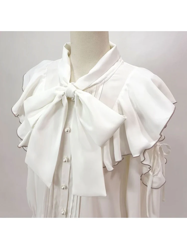 ふりふりのショルダーフリルがエンジェルのように愛らしくて可愛い技ありボウタイブラウスです。
