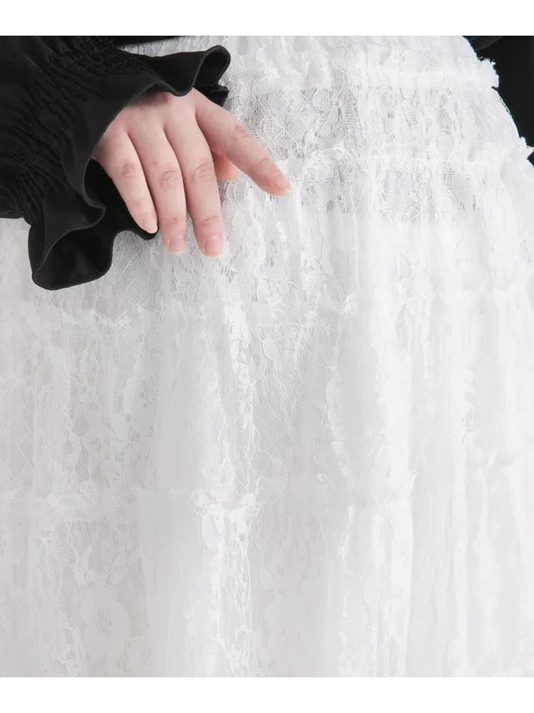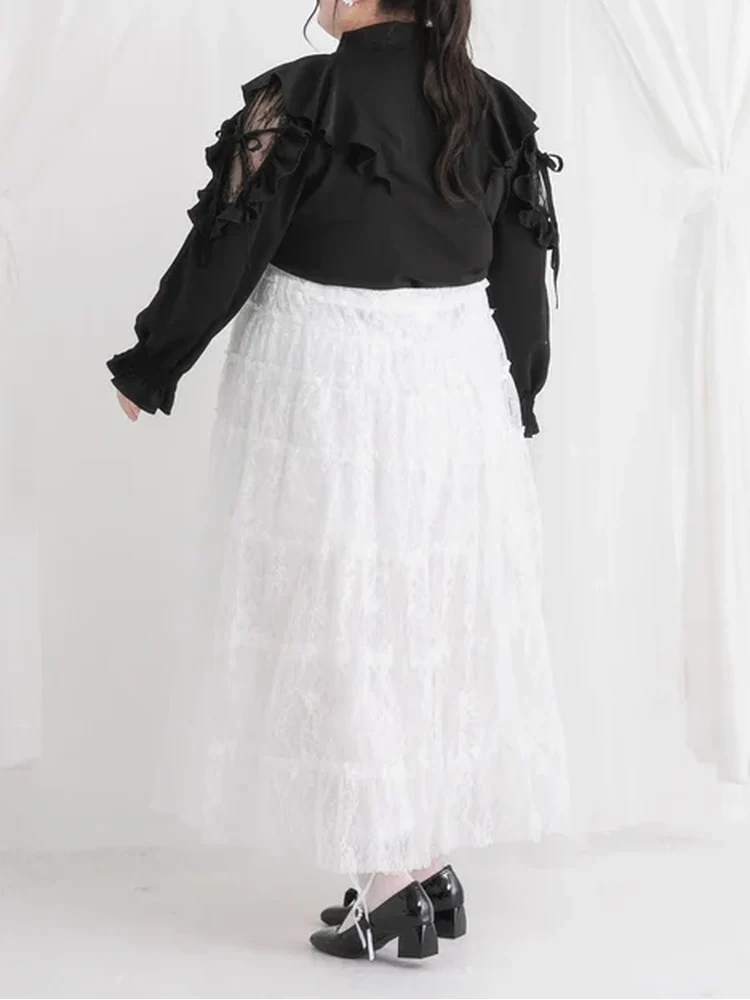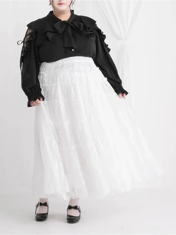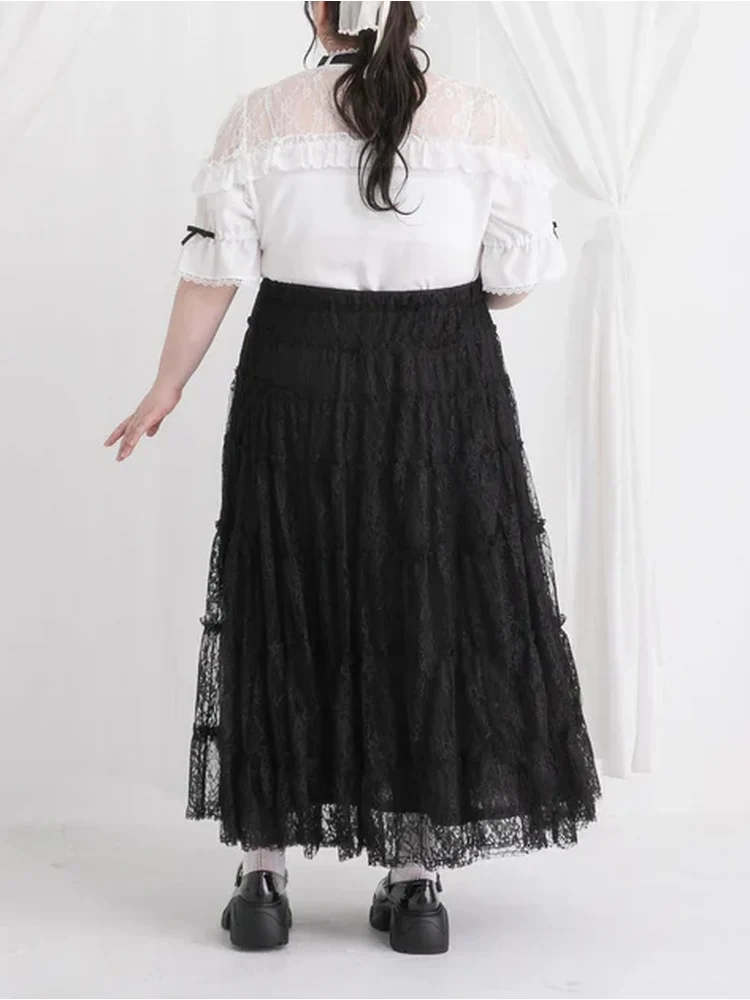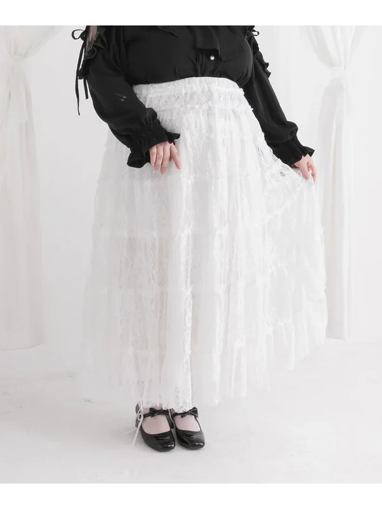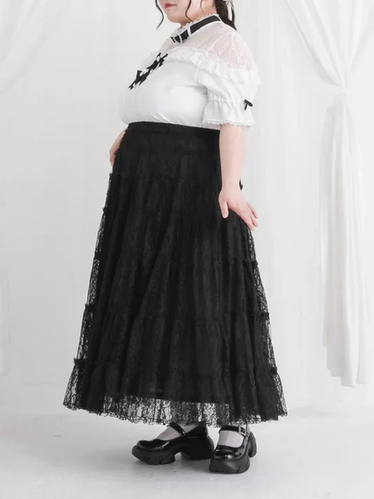 【4L-6L】レースティアードロングスカート 大きいサイズ レディース