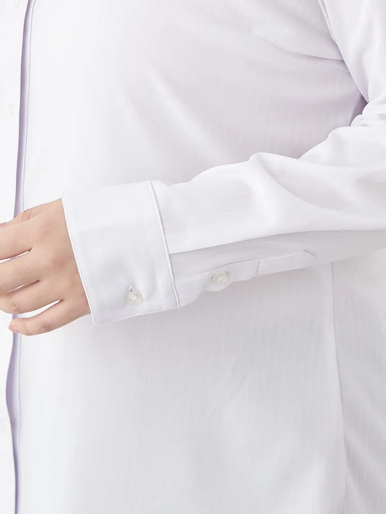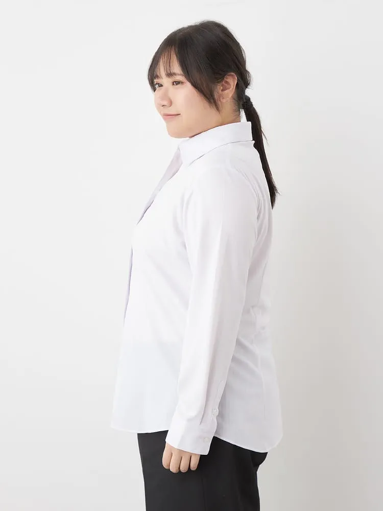 【完全ノーアイロン】レディース長袖アイシャツブラウス白無地スキッパー