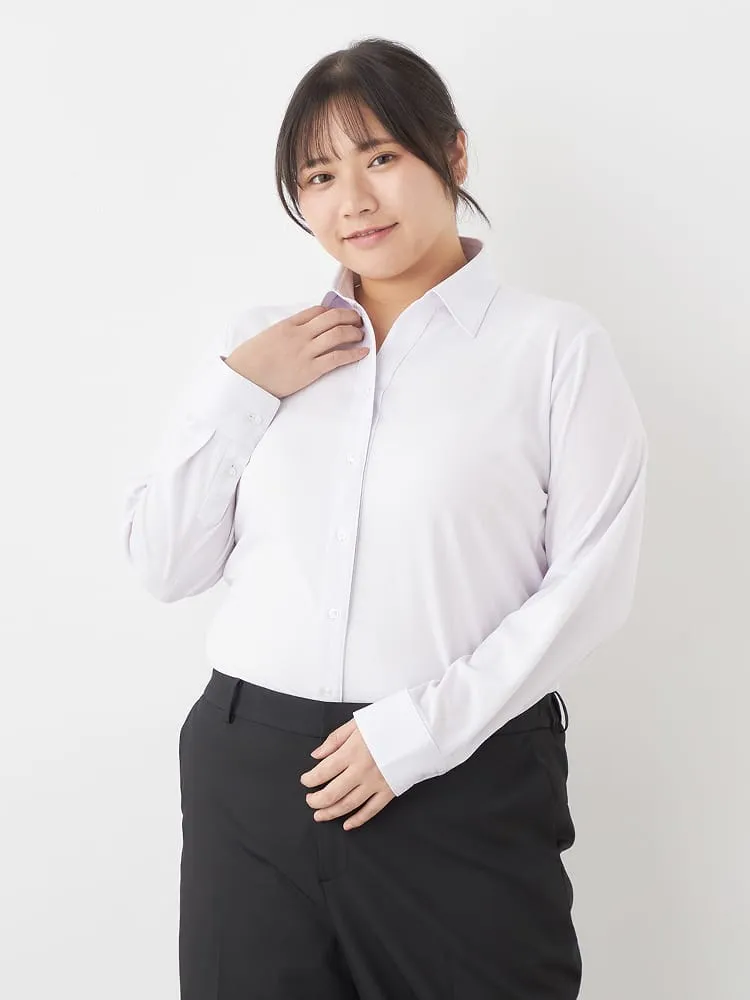 大きいサイズ レディース 【完全ノーアイロン】レディース長袖アイシャツブラウス ドビー ストライプ スキッパー