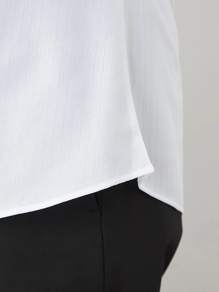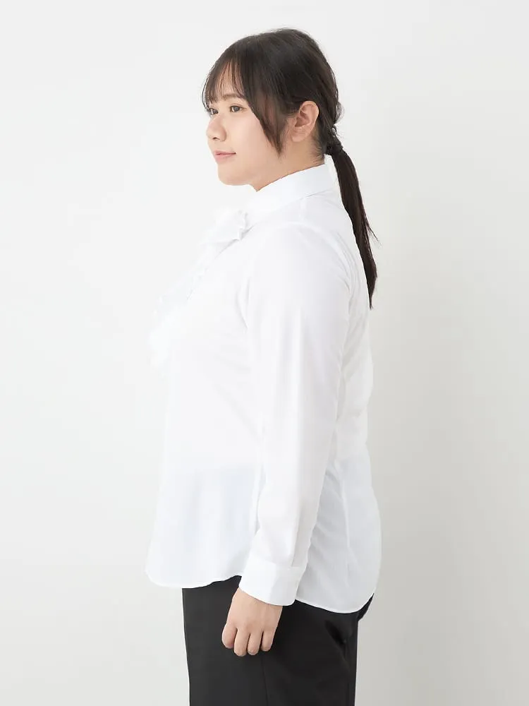 大きいサイズ レディース 【完全ノーアイロン】レディース長袖アイシャツブラウス 2WAYリボン スキッパー