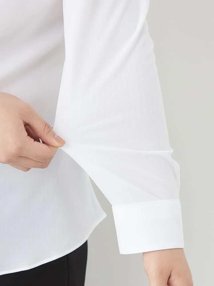 【完全ノーアイロン】レディース長袖アイシャツブラウス 2WAYリボン スキッパー