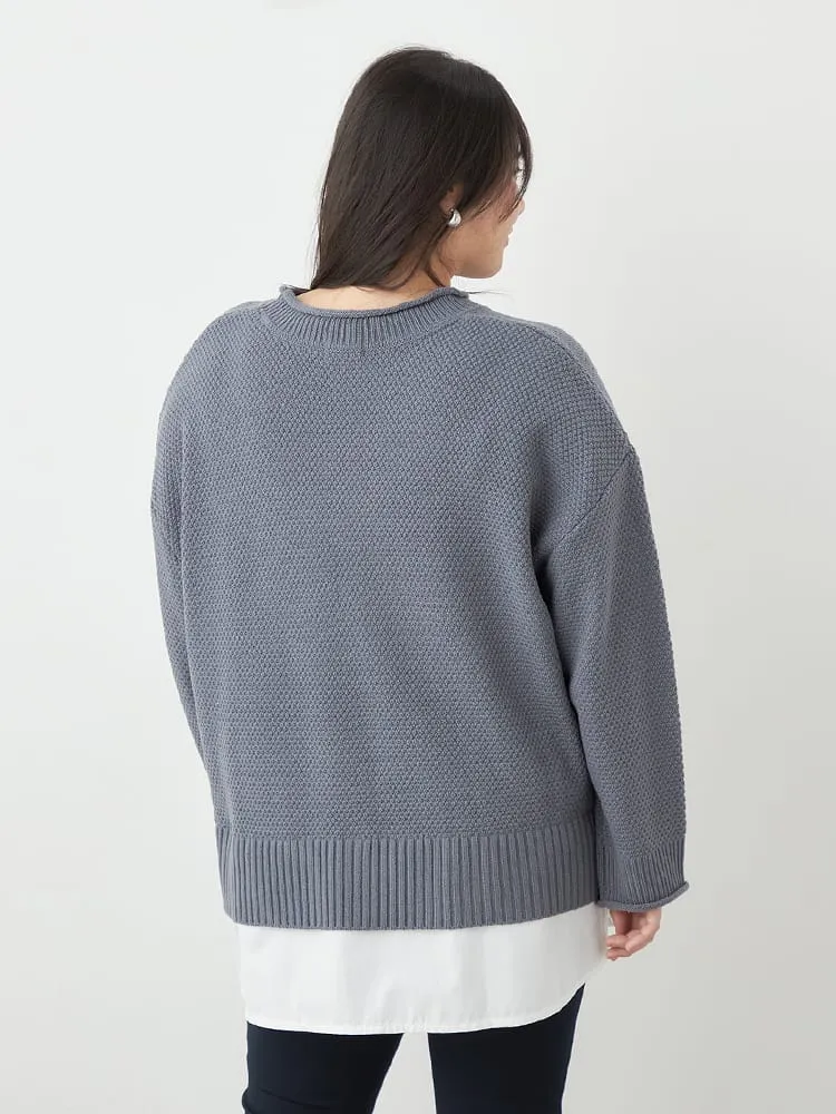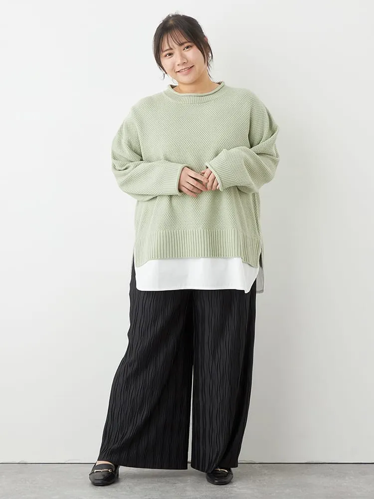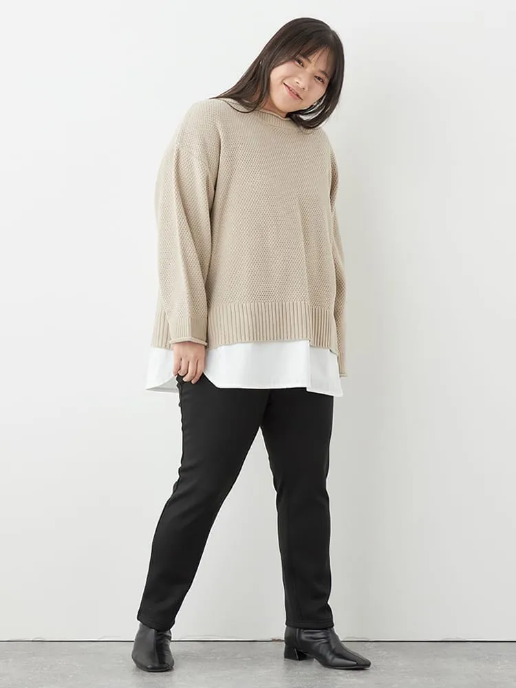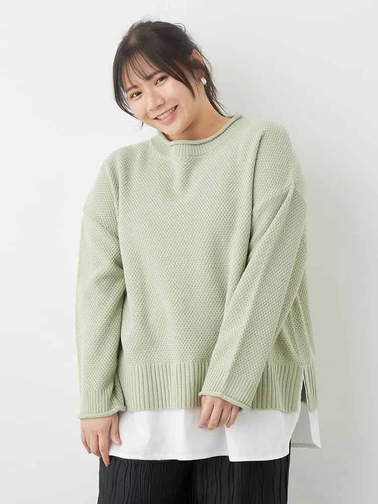 大きいサイズ レディース 【No Jean(ノージーン)】鹿の子編み裾フェイクレイヤードセーター