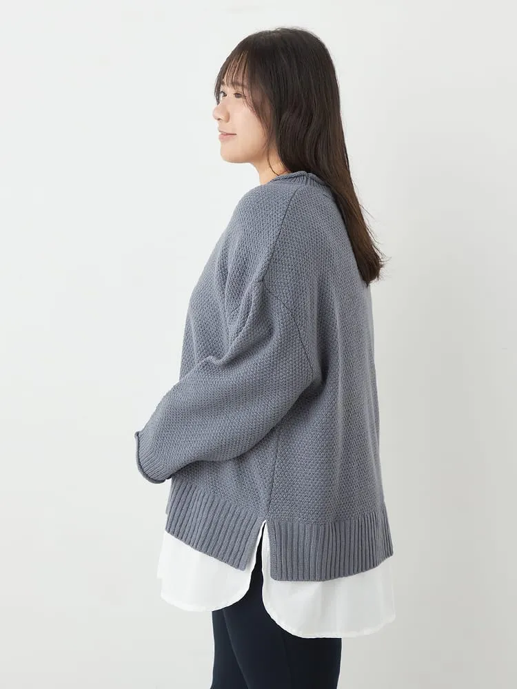 【No Jean(ノージーン)】鹿の子編み裾フェイクレイヤードセーター