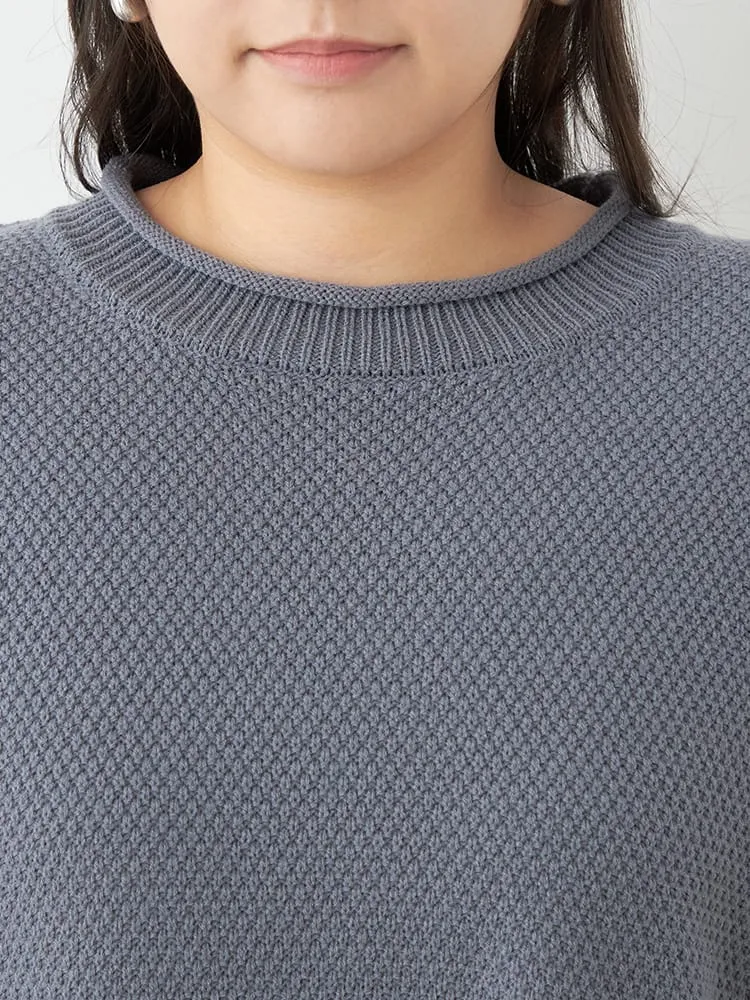 凸凹とした編地にリブ編みを組み合わせ、メリハリのある表情に仕上げました。