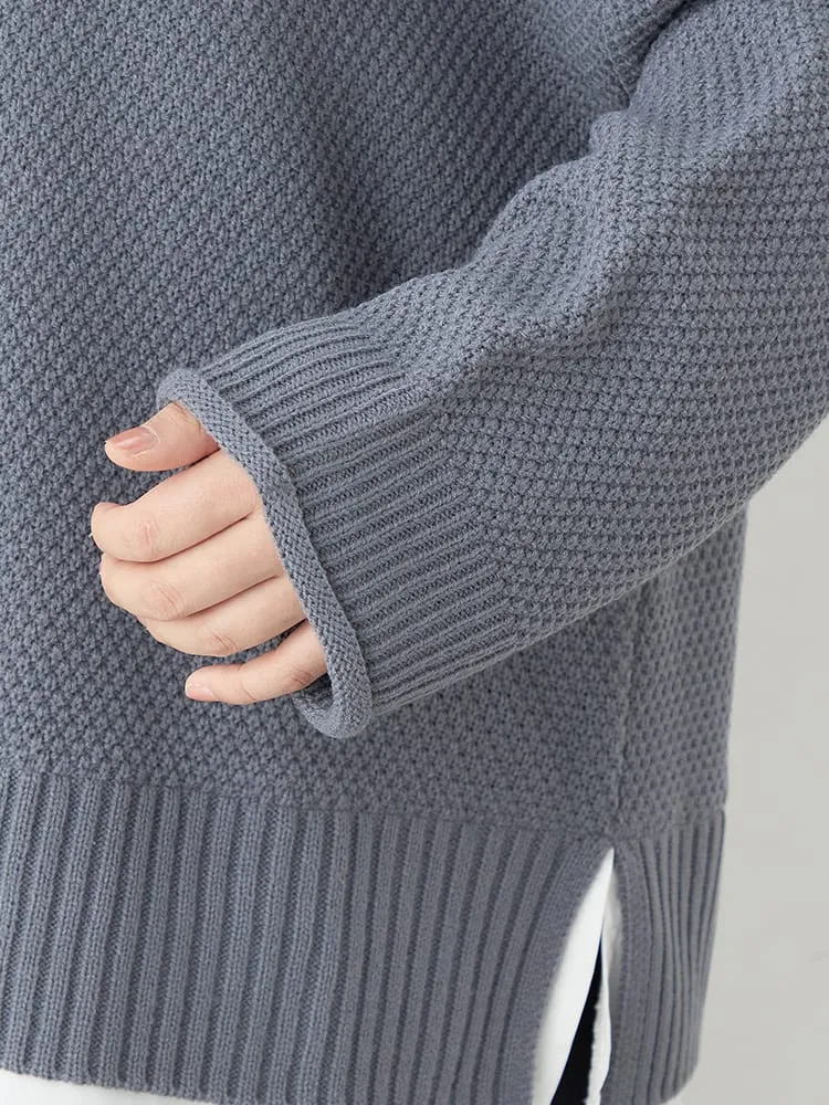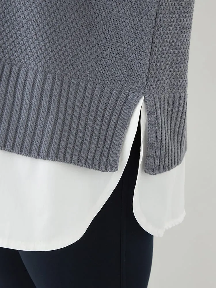 裾から別生地がのぞく、レイヤード風デザインの鹿の子編みセーターです。