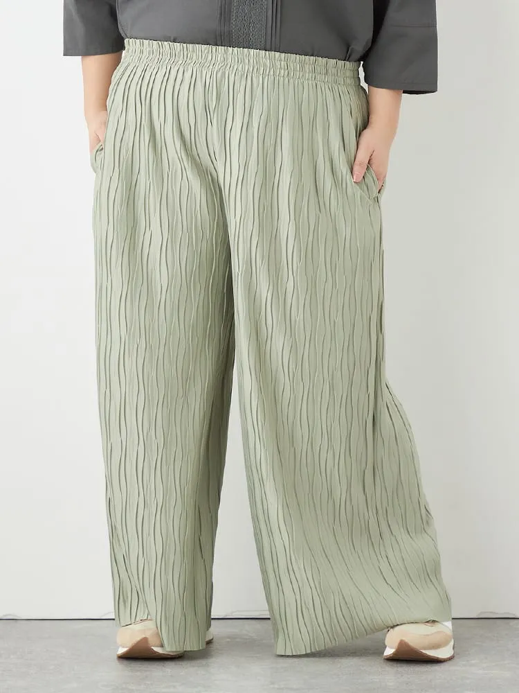 大きいサイズ レディース 【Viola(ビオラ)】ウエーブプリーツパンツ