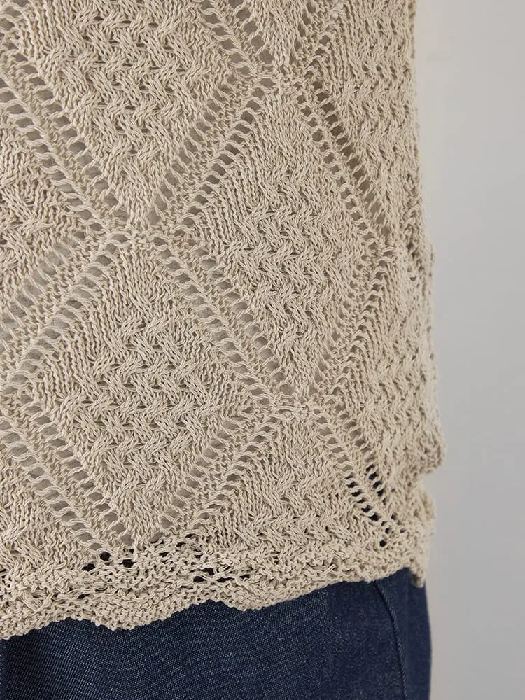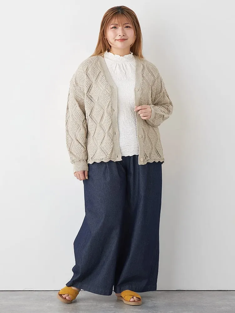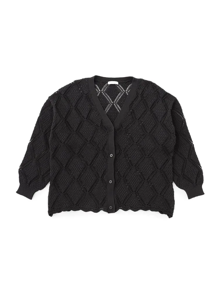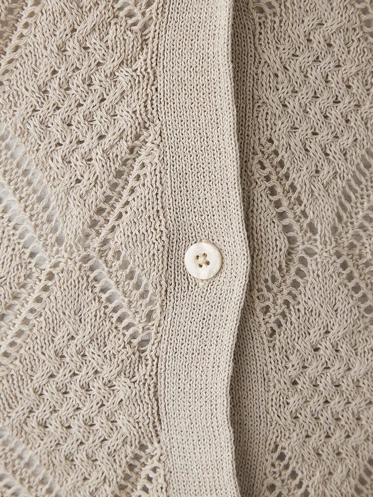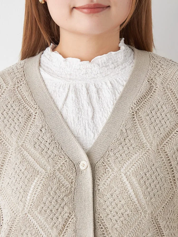 透かし柄のデザインが春らしいVネックのカーディガンです。