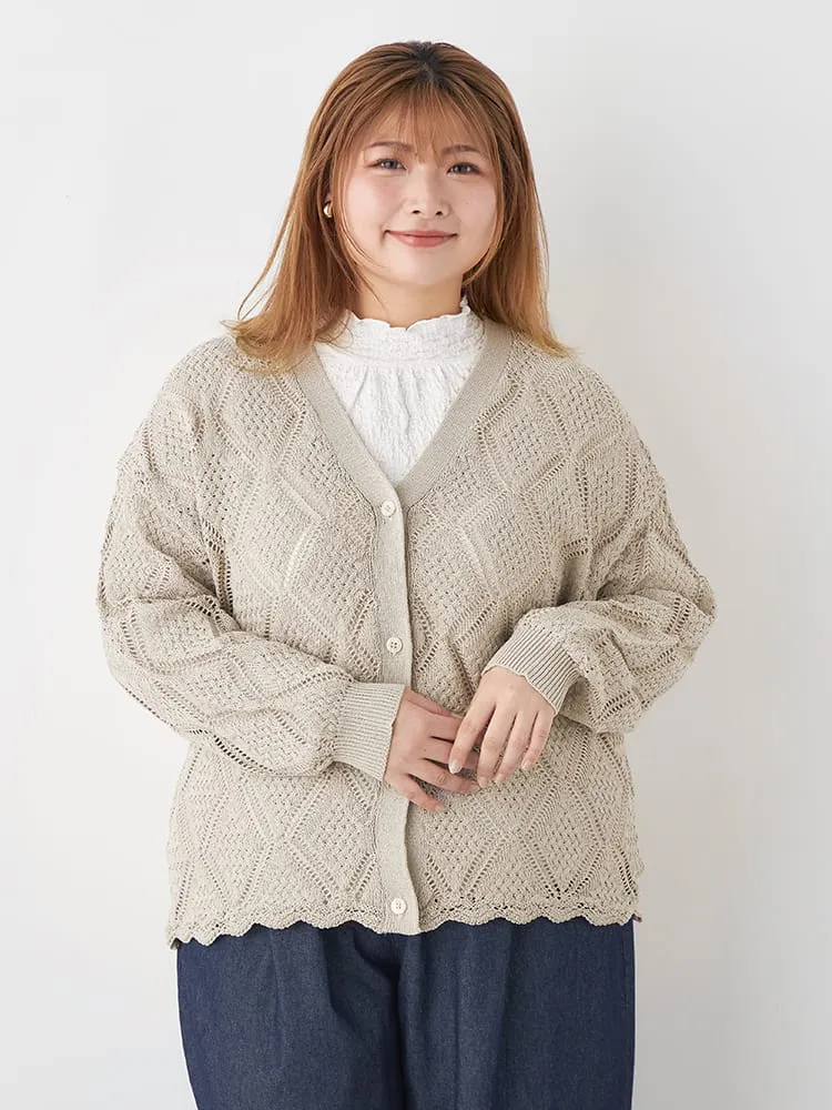 大きいサイズ レディース 【Viola(ビオラ)】Vネック透かし柄カーディガン