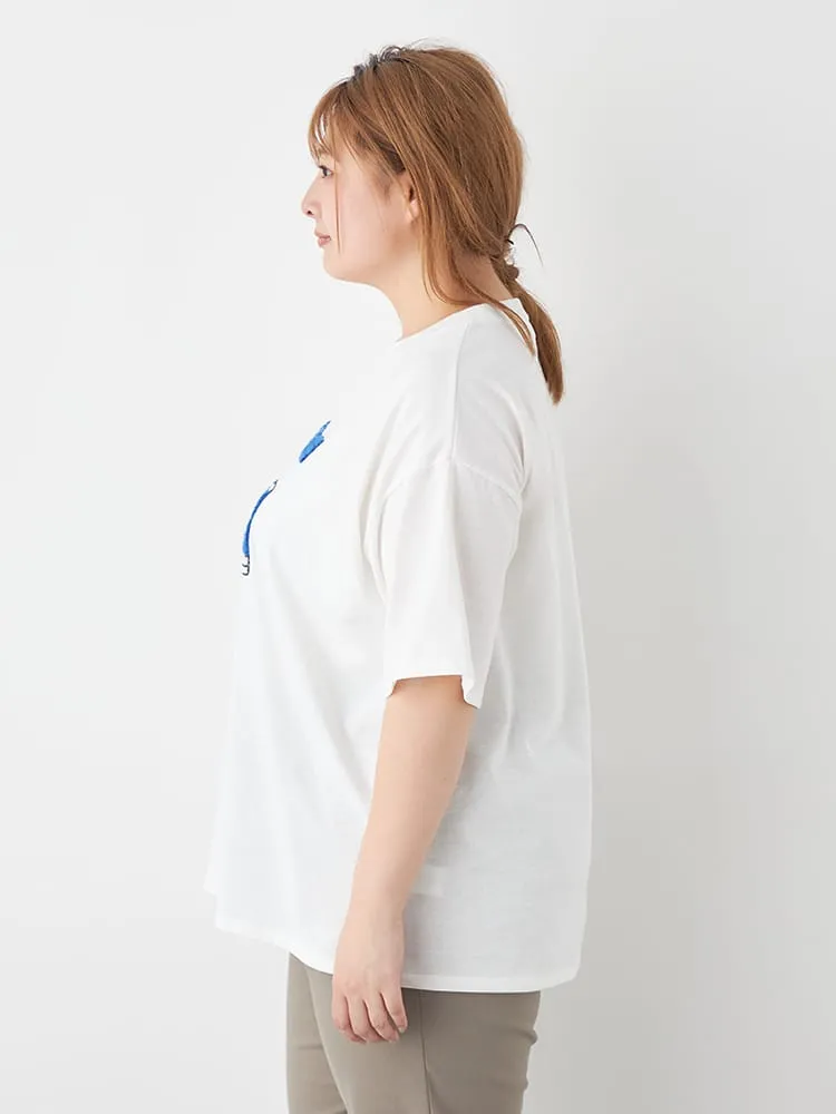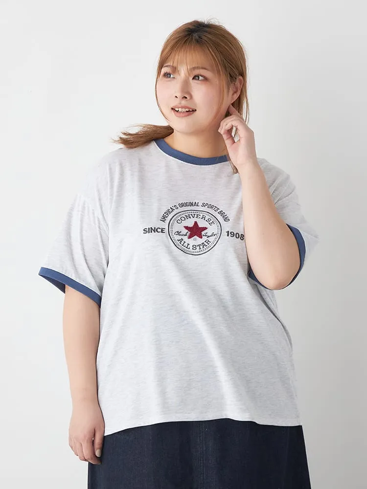 大きいサイズ レディース 【CONVERSE(コンバース)】シューズサガラ刺繍Tシャツ