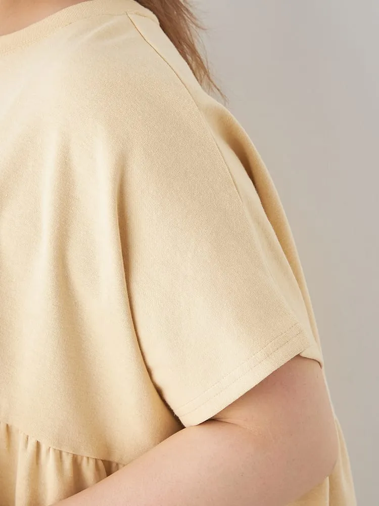 胸下をギャザーで切り替え、ドレープが綺麗に揺れるフレアシルエット。