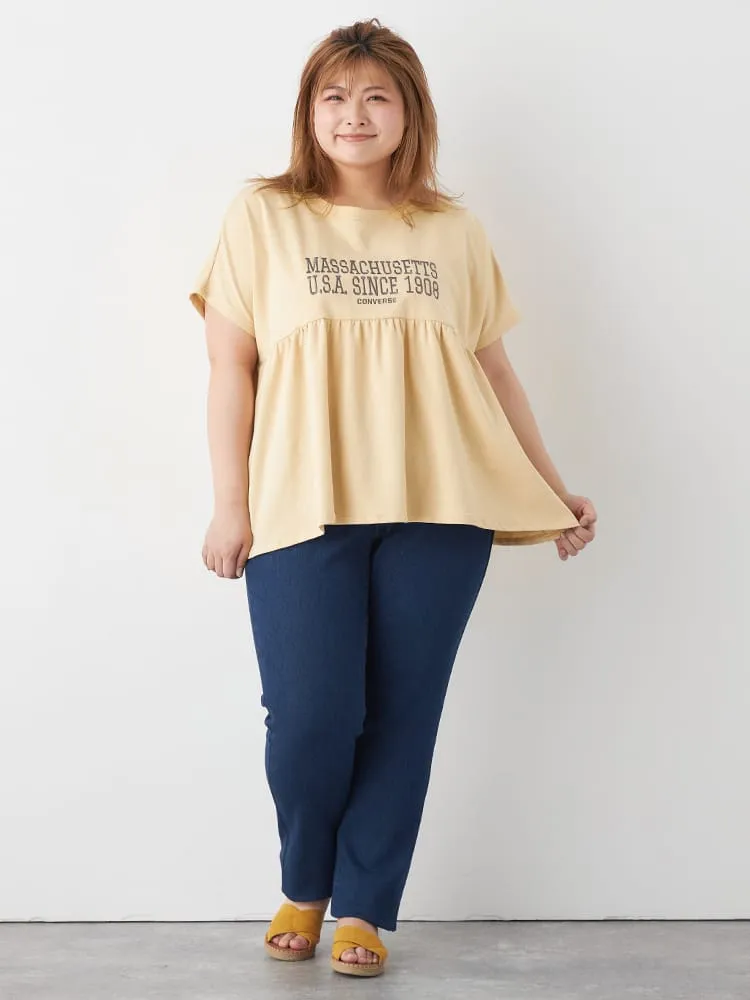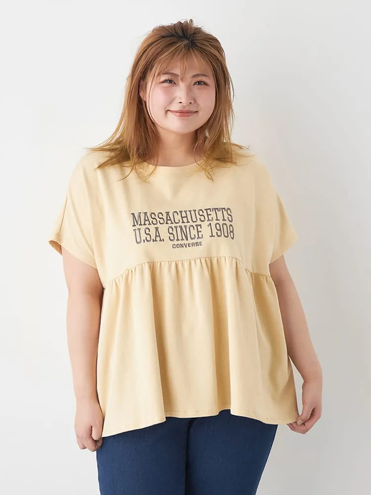 大きいサイズ レディース 【CONVERSE(コンバース)】切替ギャザーTシャツ