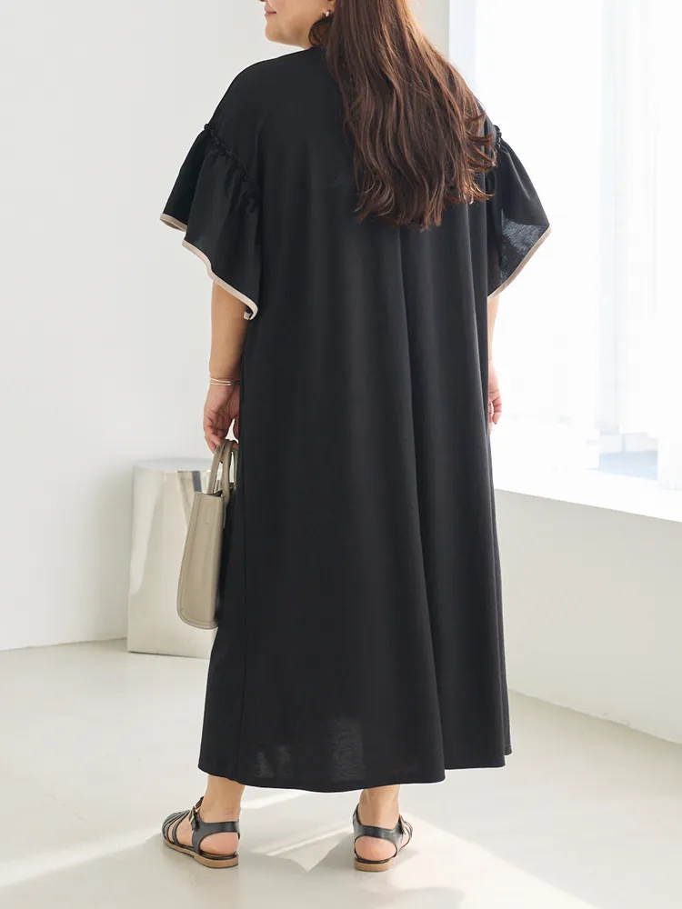 大きいサイズ レディース 【LAVEANGE(ラビアンジェ)】トリコットフリルスリーブワンピース
