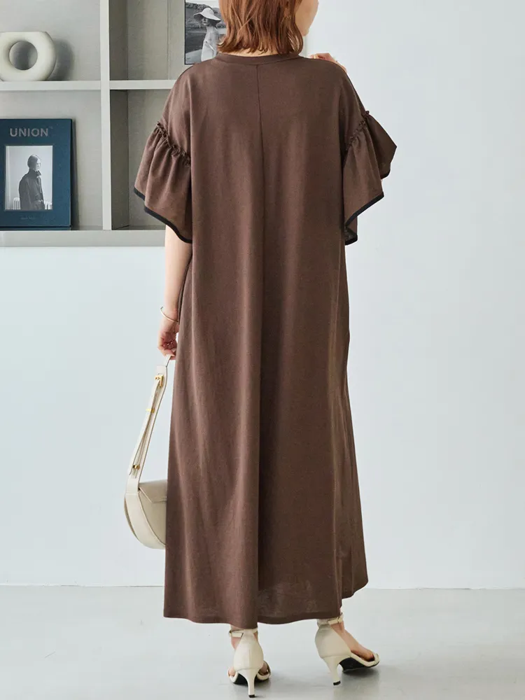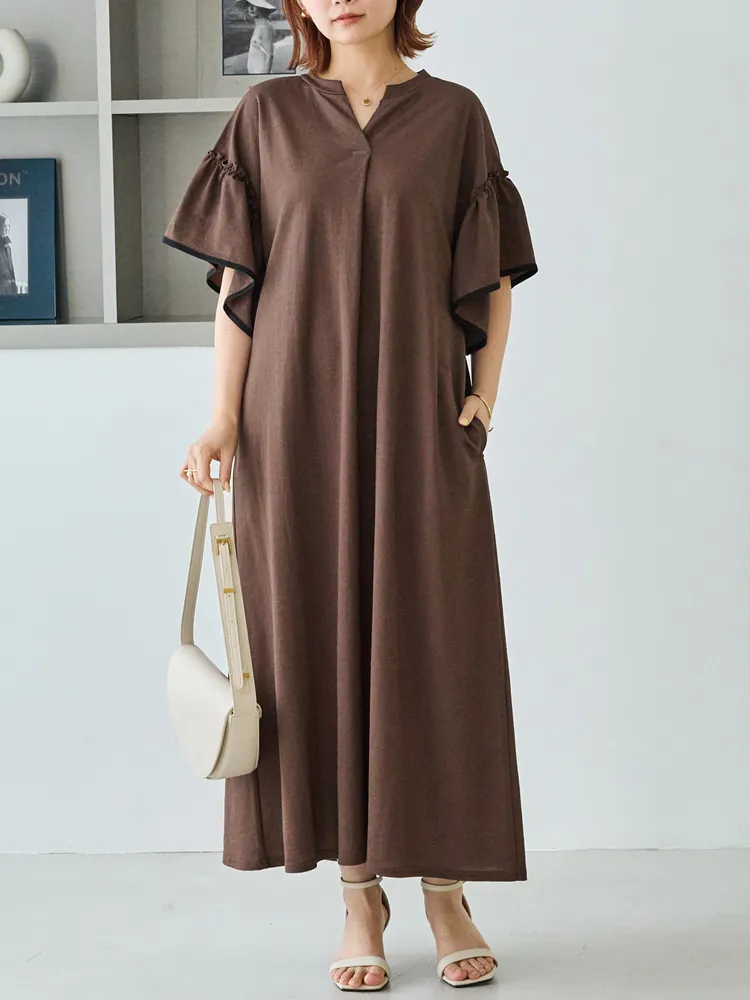【LAVEANGE(ラビアンジェ)】トリコットフリルスリーブワンピース