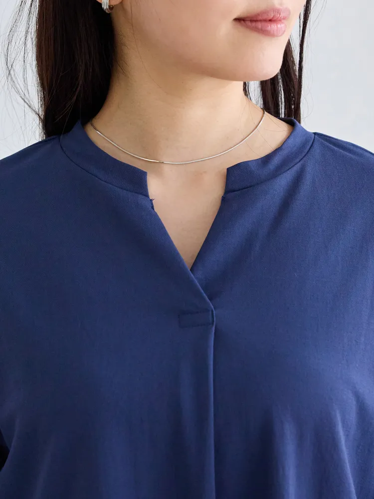 ・スキッパーネックが顔まわりに程よい抜け感をプラス