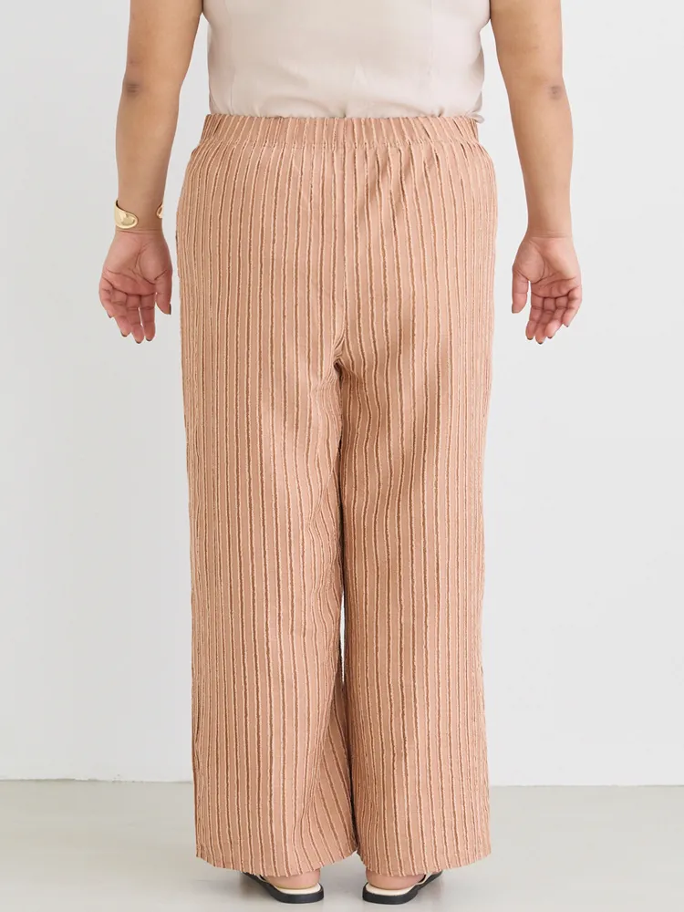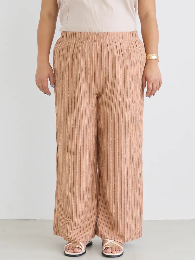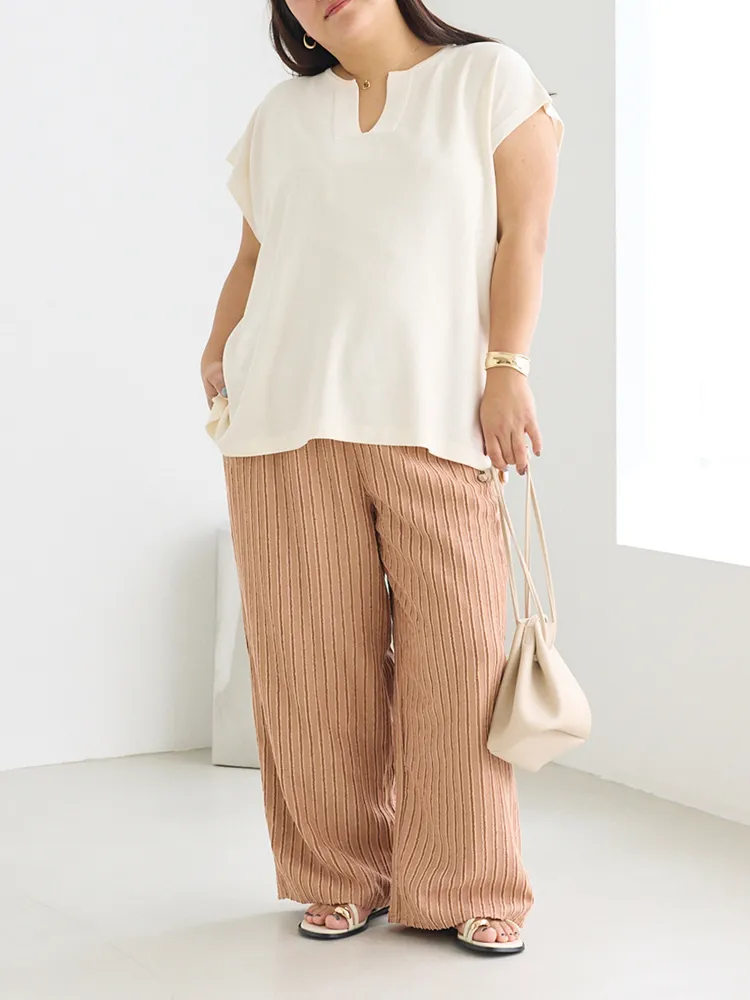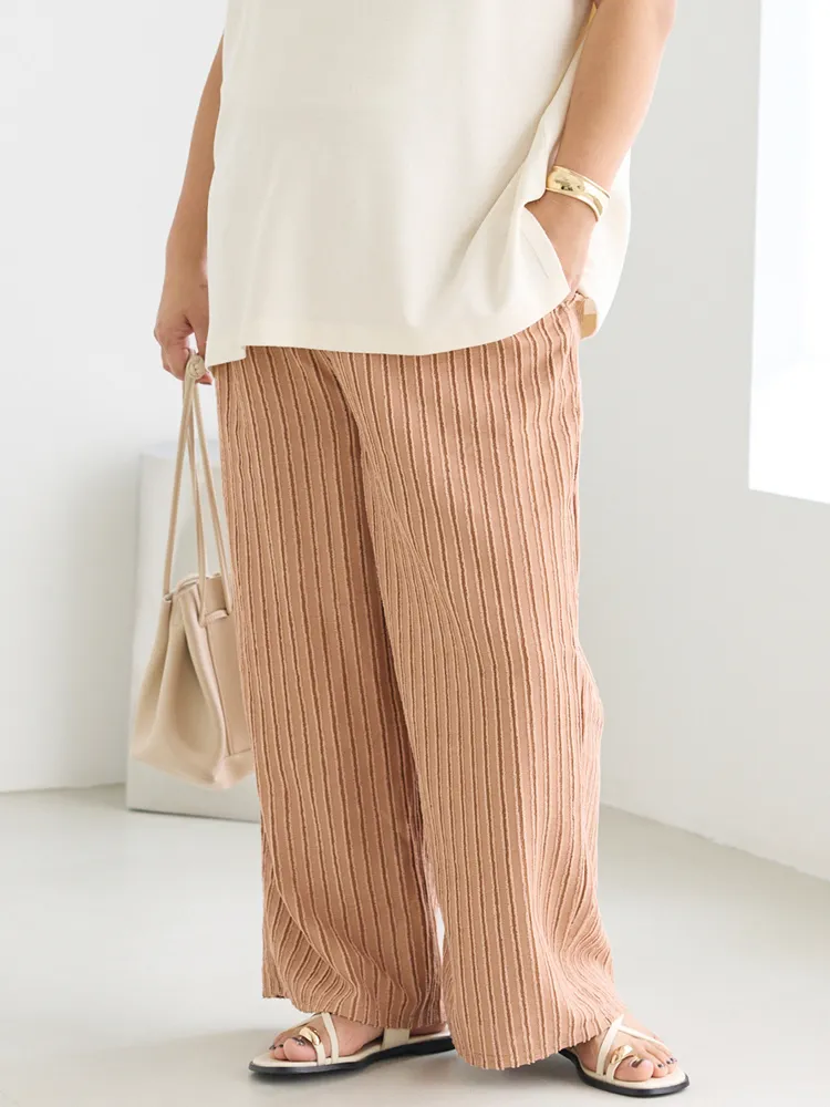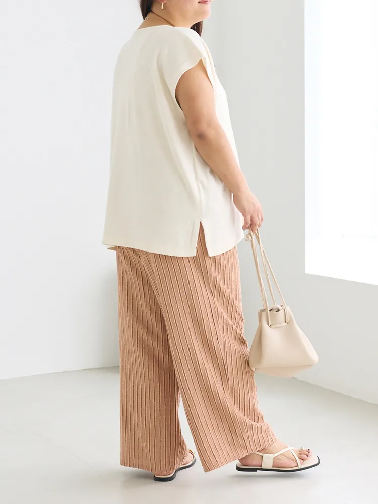 大きいサイズ レディース 【LAVEANGE(ラビアンジェ)】ストライプレースイージーパンツ