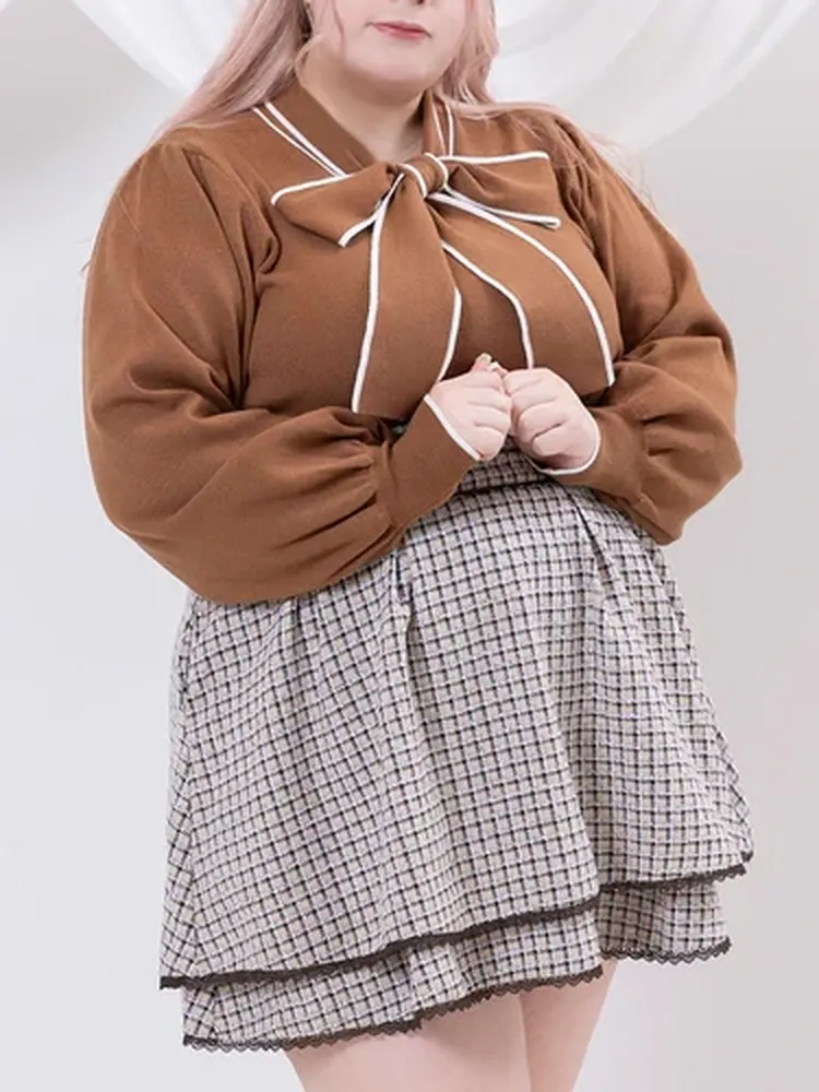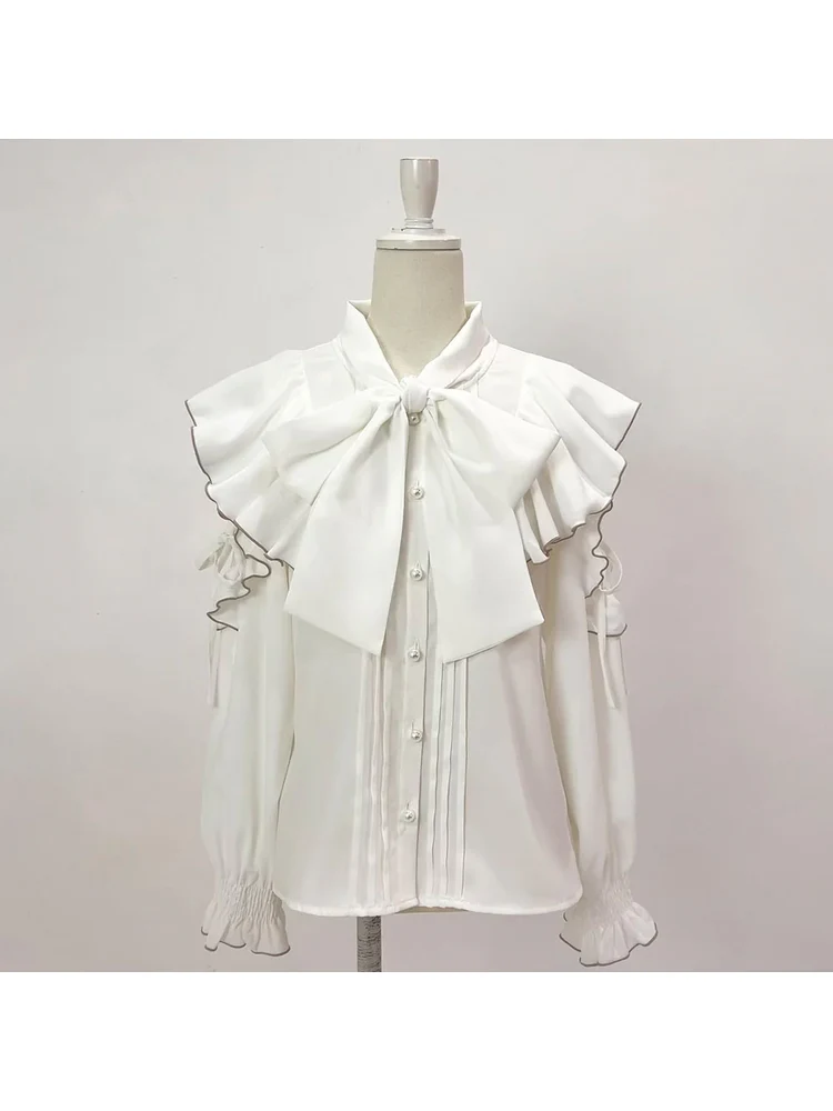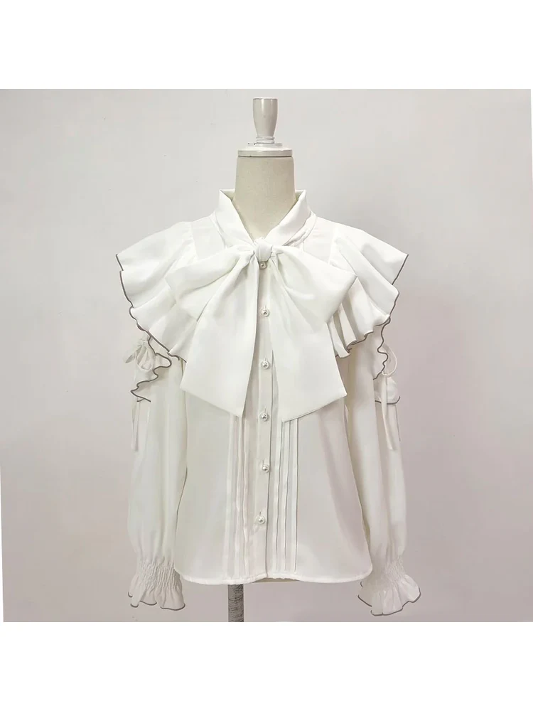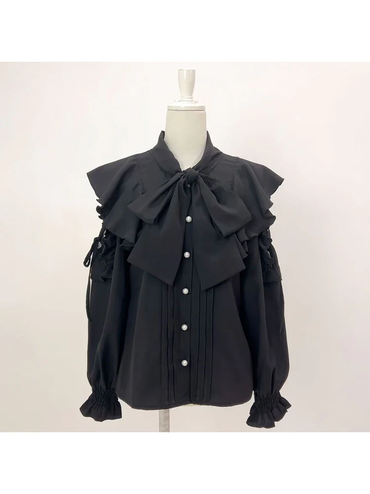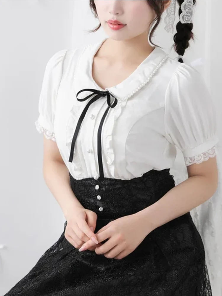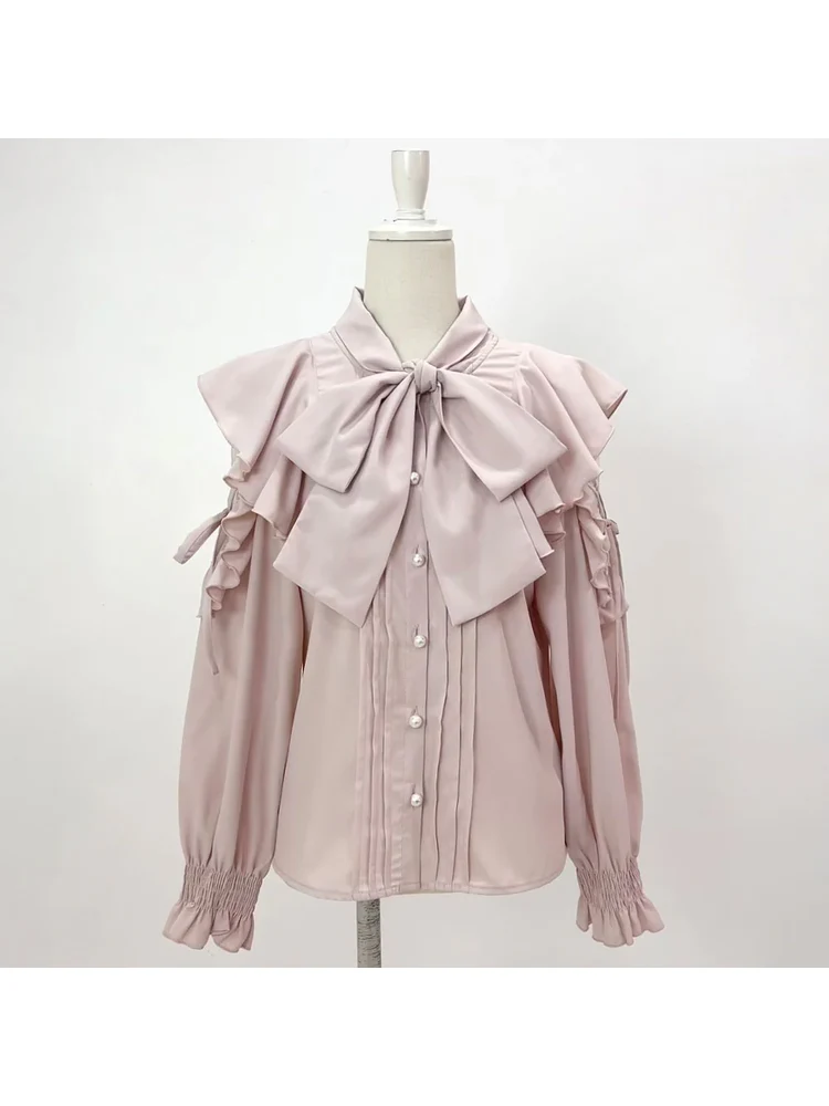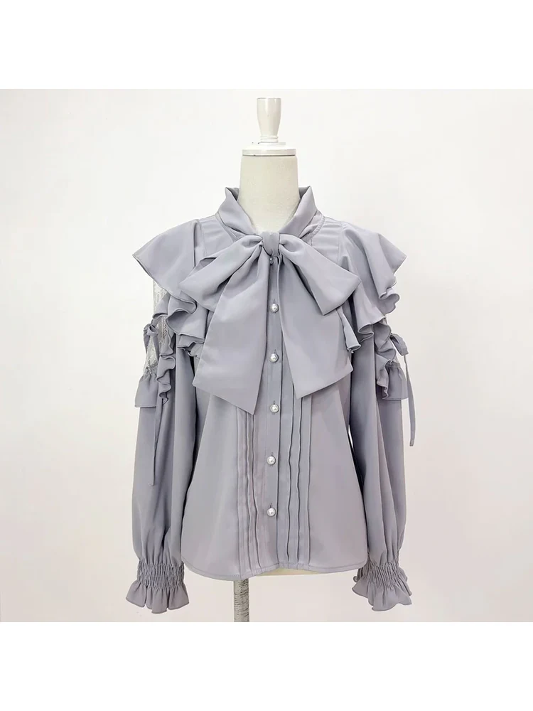 【4L-6L】ショルダーレースリボンブラウス大きいサイズレディース