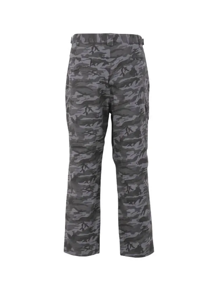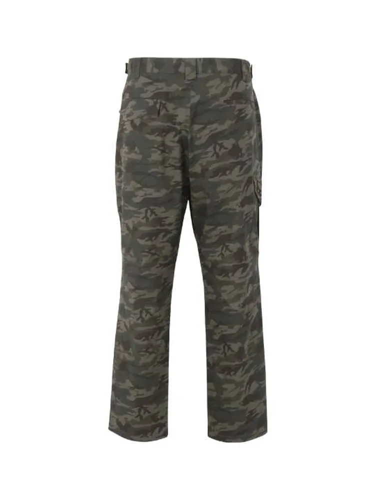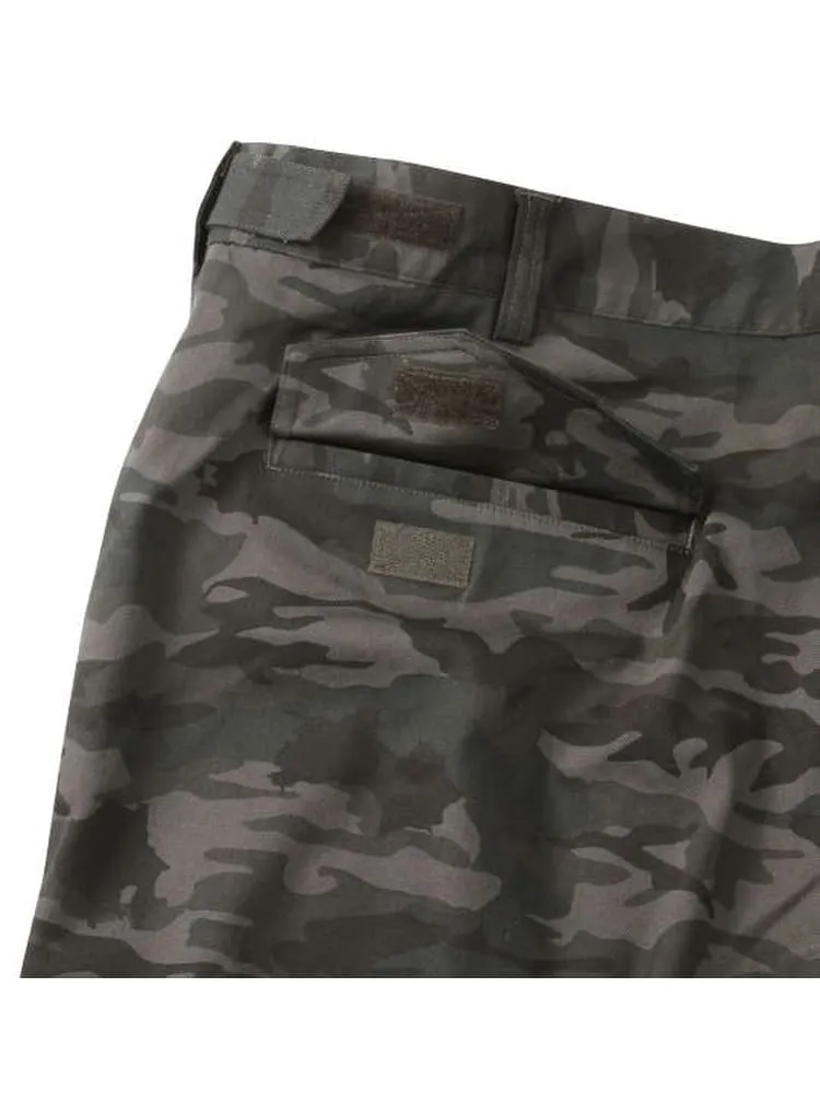 前開きファスナー/ストレッチ/消臭テープ(股下)/消臭/イージーケア/サイド・バック・カーゴポケット有/ウエストアジャスター仕様/Dカン/ベルトループ7本/迷彩柄/股下シック付き