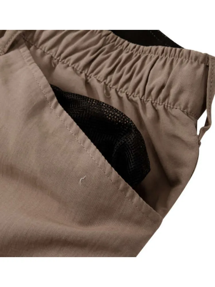 前開きファスナー/サイドポケット(裏地メッシュ仕様)・バックポケット(マジックテープ・ゴムループ付き・水抜きハトメ穴有)/ベルトループ7本/ウエストシャーリング(調節紐有)/スナップボタン/刺繍/紫外線カット/接触冷感/水陸両用