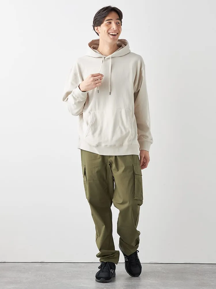 タフ縫製仕様の綿素材裏毛プルパーカー