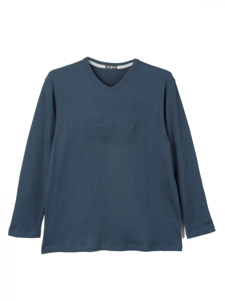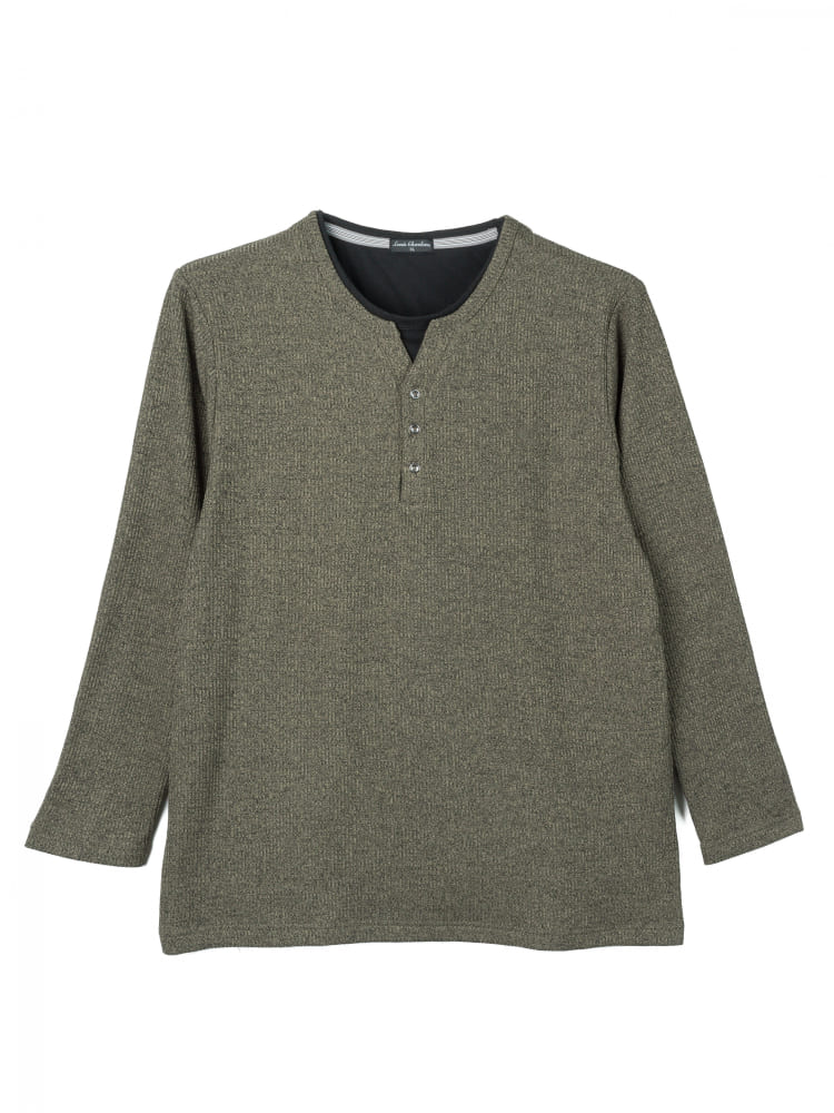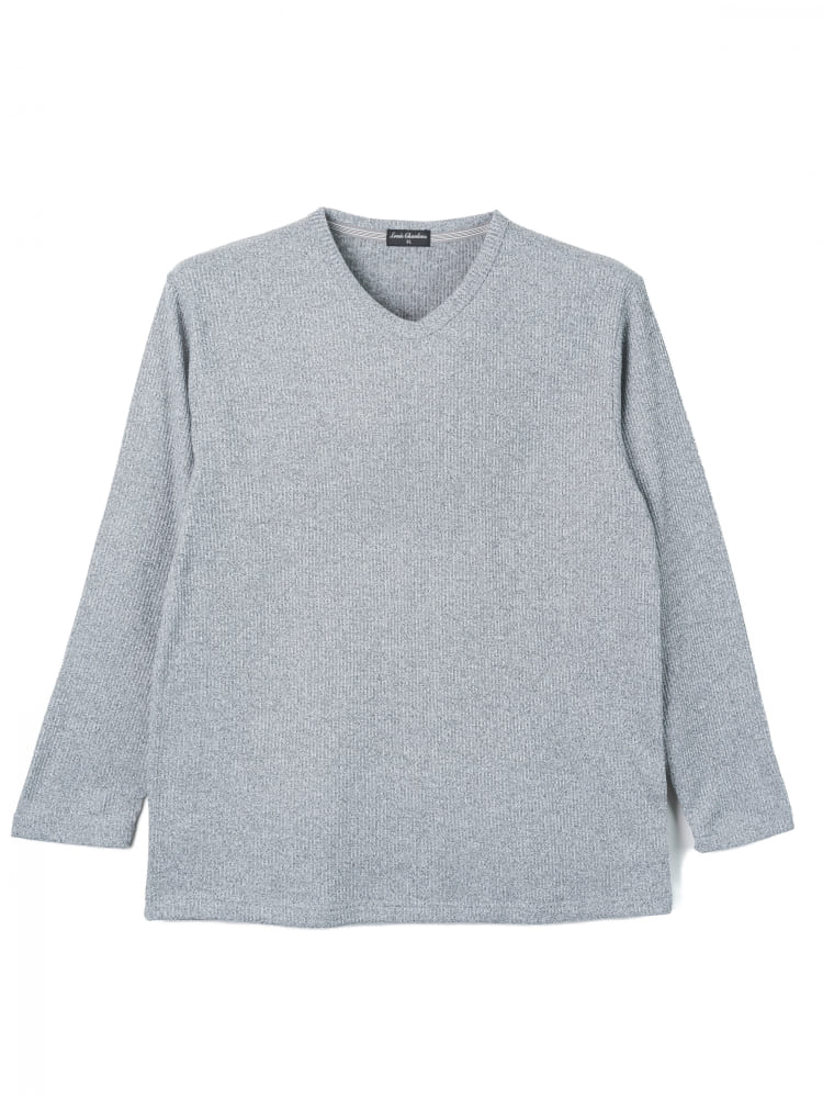 【ルイシャブロン】裏起毛Yヘンリー&Vネック長袖T 大きいサイズ (ブラック)