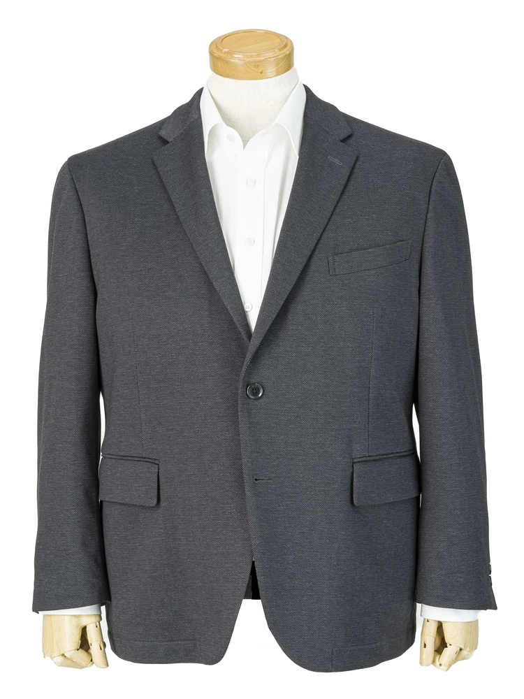 【EL.FO URBAN WORKS】ウォッシャブル ニットカルゼ無地調ジャケット 大きいサイズ(ネイビー)