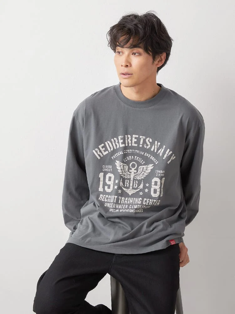 【RED BERETS(レッドベレー)】空紡天竺ミリタリープリントTシャツ(オフホワイト)