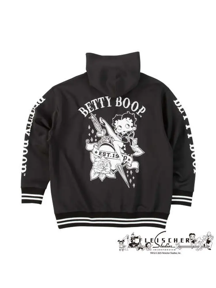 【BETTY BOOP(ベティブープ)】ニットフリースプリントフルジップパーカー *カタログ商品 大きいサイズ(ブラック)